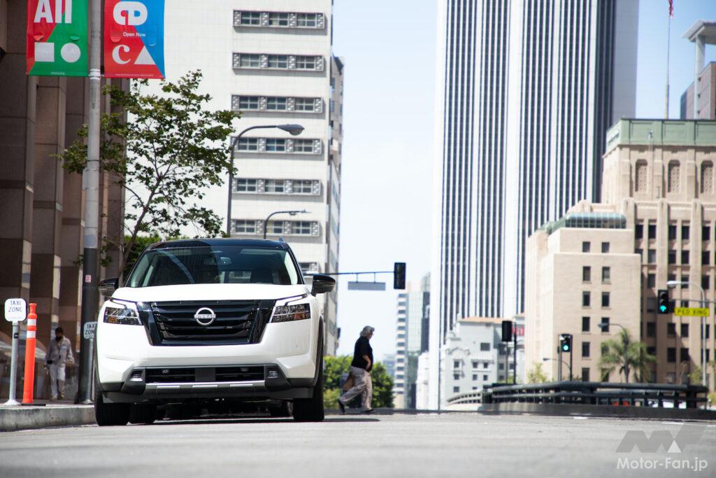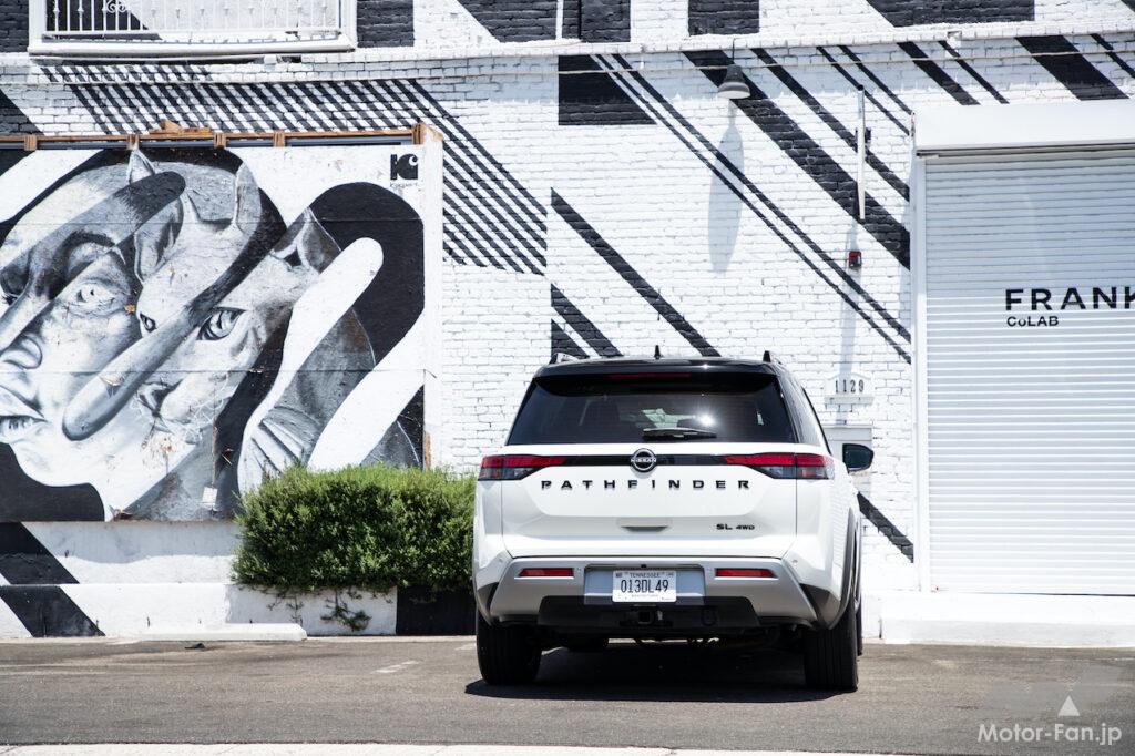 現行のパスファインダーが北米で発表されたのは2021年の2月。同年夏からの発売なのでアメリカでもまだ出来たてホヤホヤの新型車だ。撮影していると「おっ、新しいパスファインダーかあ、いいねえ!」と声をかけられることも多かった。