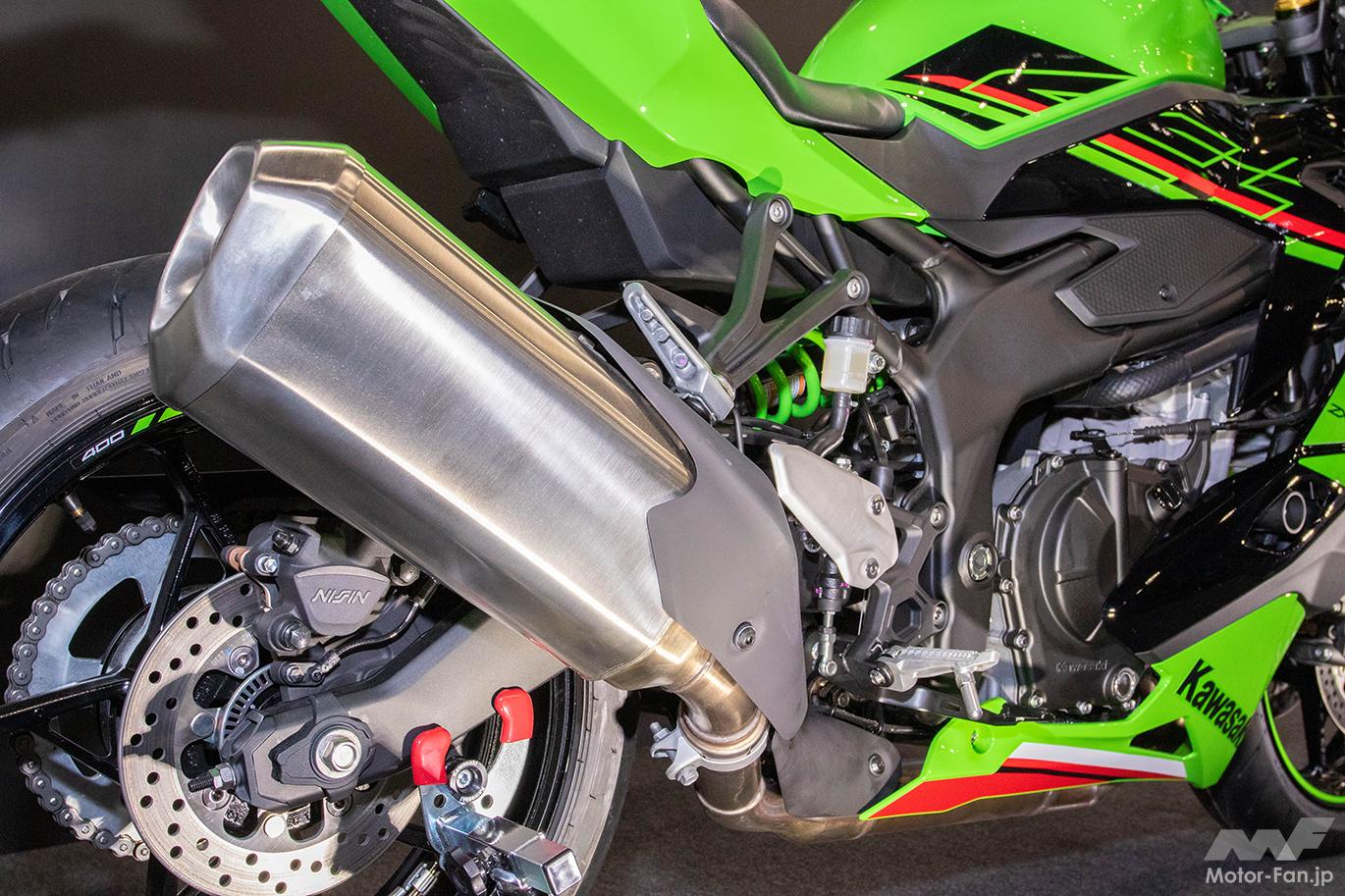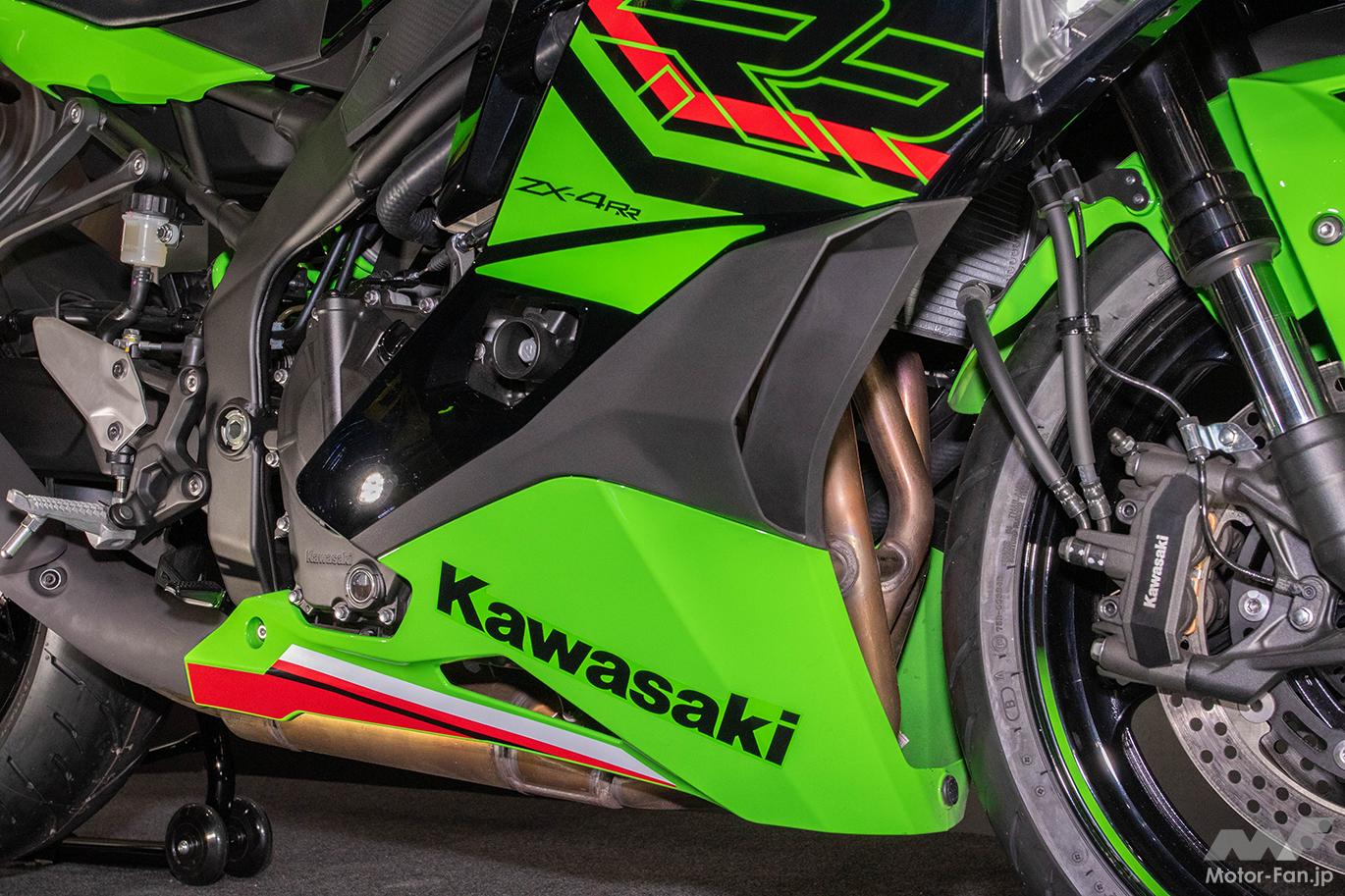 すでにNinja250とNinja400でのユーザー動向から、世間では車検の有無よりもオートバイ本来の楽しさを優先している状況が見て取れる。コストを重視するなら、もっと低価格のオートバイを選択するはずで、スペックにこだわるからこそNinja ZX-25RやNinja ZX-4Rの購入を検討しているはずだ。正直なところ、性能的にはNinja ZX-25Rでも一般公道では十分に速く、250ccクラスでリッターSS並みのライディングプレジャーが味わえるのは貴重。扱いきれないパワーを持て余してエンジンの魅力を堪能できないくらいなら、250ccの性能を引き出して走る方がスカッと気持ちいいものだ。勝手な意見として述べるなら、腕の未熟な初心者やダウンサイジングを検討する年配の方には、自身の技量でコントロールしやすいNinja ZX-25Rをオススメする。それ以外の方には、パワフルなNinja ZX-4Rの方が後悔しない選択になるだろう。ともすれば、大型二輪免許を取得しなくてもNinja ZX-4Rで十分と思えるユーザーが増えるかもしれない。それほどまでにNinja ZX-4Rの性能は、既存の400ccクラスを超越していると感じさせるのだ。カワサキの広報担当者に「メッチャ速いらしいですね?」と尋ねると「メチャメチャ速いです!」とキッパリ断言された。今後の実車インプレッションで詳細はレポートされるだろうが、Ninja ZX-4Rの購入を迷っているなら秋まで待つだけの価値は十分にあると断言しよう。