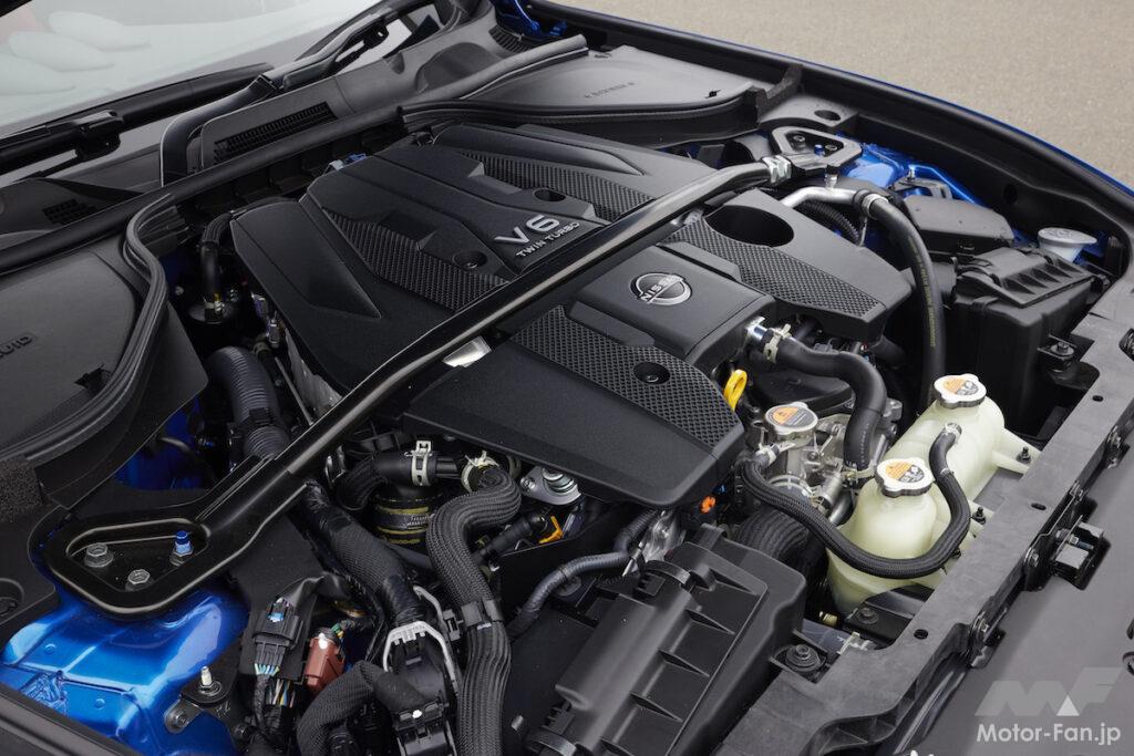 新型Zのベースとなっている6代目Z34「Z」がデビューしたのは2008年のことだった。10数年分の近代化を図るにあたってボディを補剛し、最新の安全技術や運転支援システムを採用し、自然吸気だったエンジン(VQ37VHR、3.7LV6)をターボエンジンに置き換えた結果、車両重量は最大で約80kg重くなっている。重量増の約8割をパフォーマンスに使っているという。