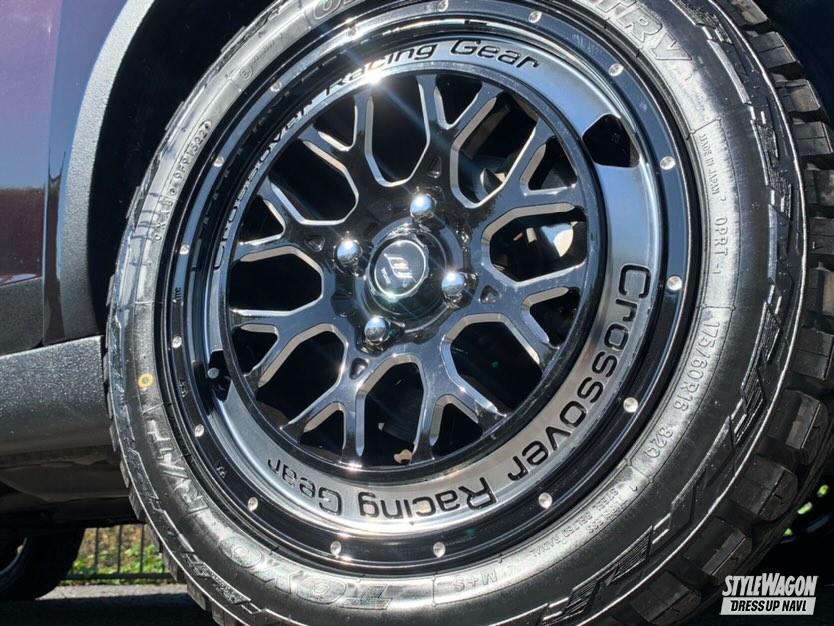 ダークトーンでまとめたプロボックスとマッチするワークのクラッグCKV。オープンカントリーR/Tとの組合せで、さりげなくオフ感を高める。