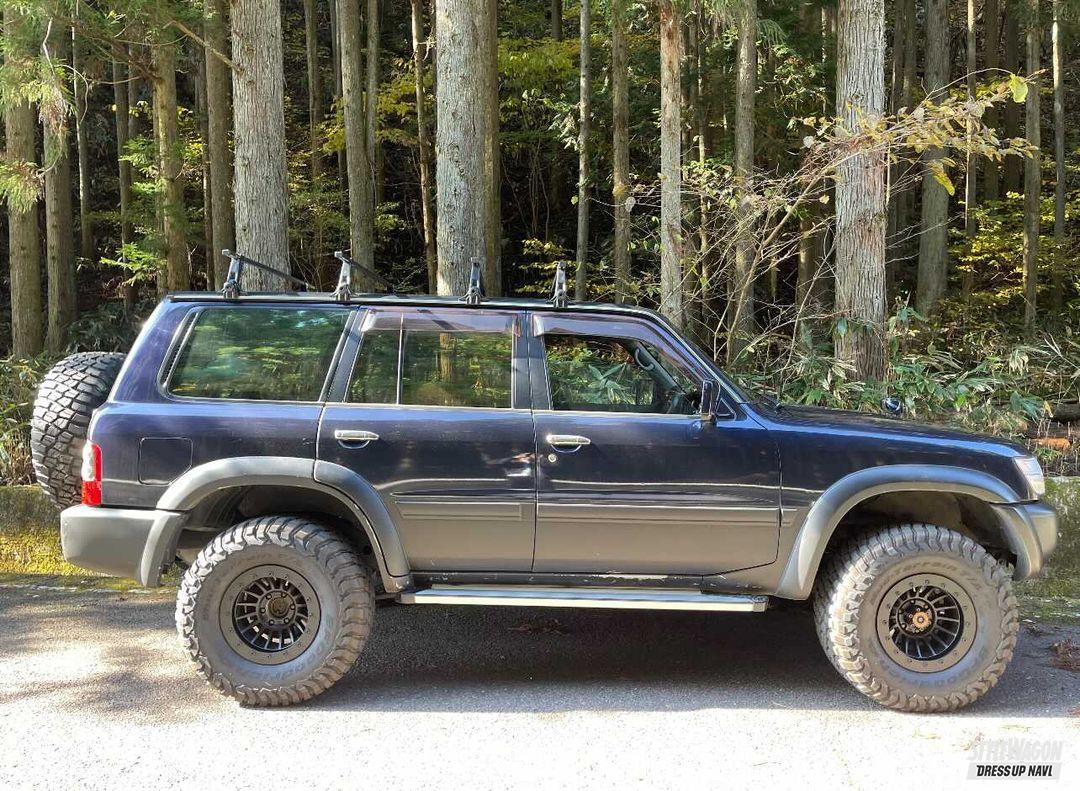 個性を高めるビードロックリングに、インセット−25と攻めたサイズの奥行き感で迫力を増すタービンZ1。サファリの足元をパワフルに。