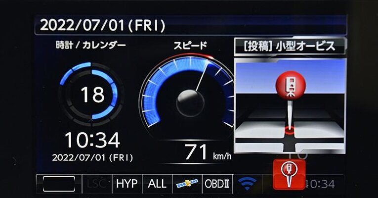 別売のOBDアダプターを繋ぐと、レーザー&レーダー情報以外に、多彩な車両情報をリアルに取得できるため、表示画面も様々な設定が可能。