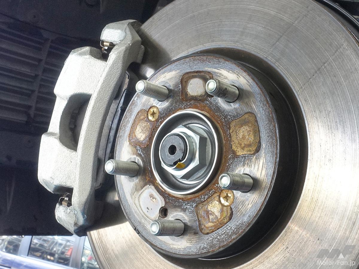 ブレーキパッドの残量を目視してみると減っている感じはほとんどなかった。ハードな走りをしていないこともあり、基本的に回生ブレーキでこと足りているのだろう。点検後にいただいた明細には、フロント残量9.5mm、リヤ残量10.5mmとなっていた。この様子だと5年の残クレが終わる頃でもパッド交換の必要はなさそうだ。