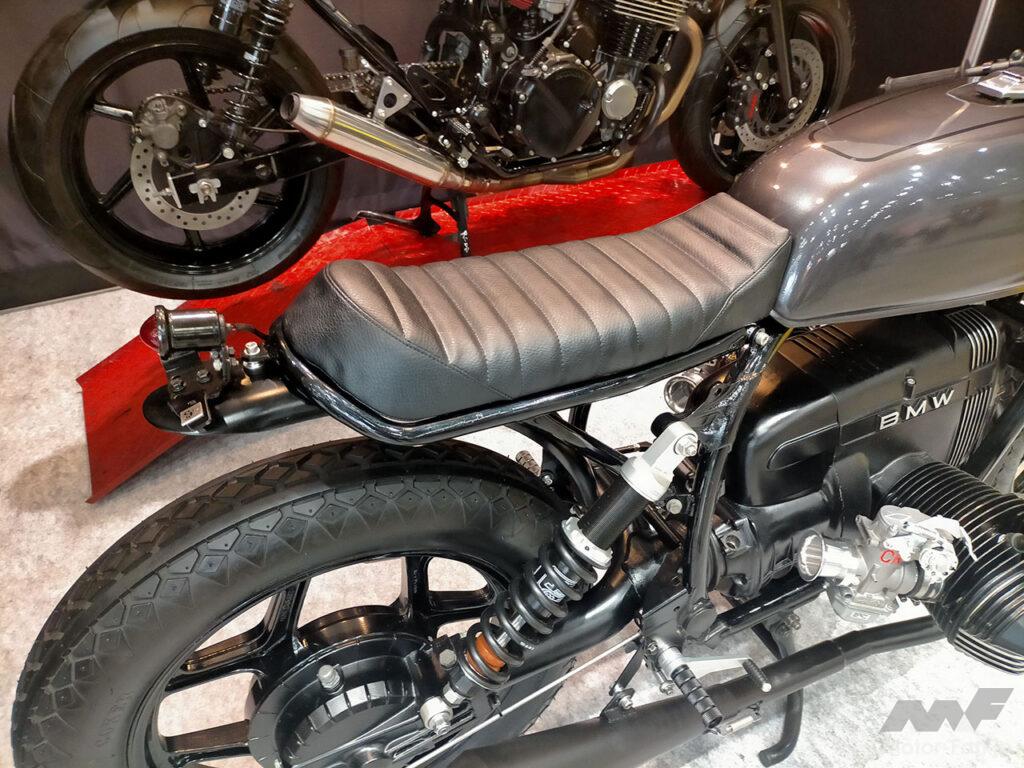 BMW R100RSをベースにカフェレーサーへとカスタムするのは、昔ながらの人気の手法。写真は既存のBMW R100RSカフェレーサーとは一味違った、ミナミモーターサイクルが掲げる「無駄なものを省いてシンプルに!」というコンセプトを貫いた一台に仕上がっている。