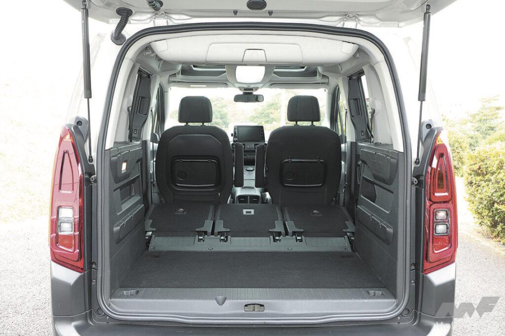 電動スライドドアが選べないのはお国柄ということで。2列目シートはリクライニングできないのが難点だが、それぞれ個別にアレンジが可能で横幅が均等な3名分の独立したシートが配されている。前倒ししたときの奥行きは2m近くあり、さらに助手席まで倒すと2.7mの長尺物も積める。ただし、完全にフルフラットにはならないので車中泊するにはちょっと工夫が必要だ。
