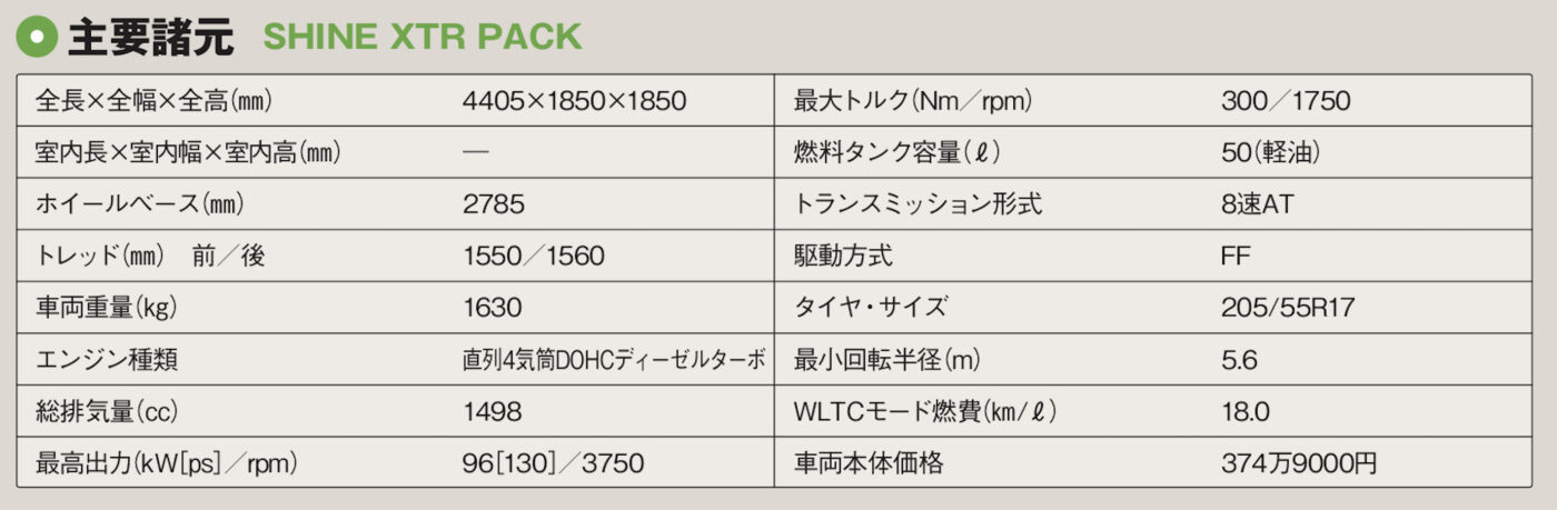 日本向けは1.5l直4ディーゼ ルのみで、8速ATが組み合わされる。ディーゼルとしては音や振動は それほど大きくない半面、トルク感が控えめな感もなくはない。プラットフォームは最新版ではないものの、乗り心地はシトロエンらしい。ソフトタッチなテイストながら、 重心高のそれなりに高いクルマゆえロール等の挙動を抑えるべく引き締められた感覚もあり、そのさじ加減が良い落としどころをついている。