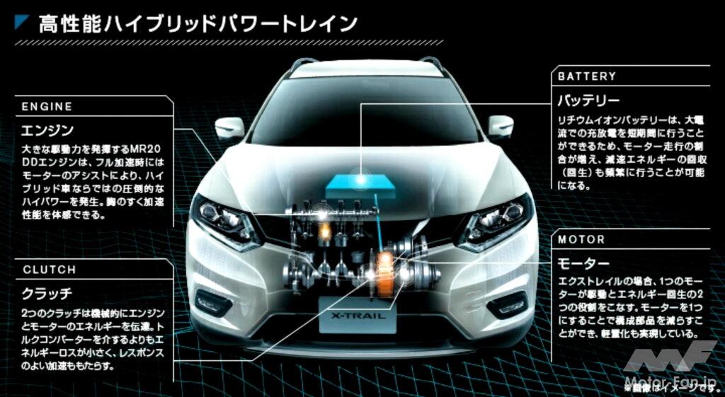 先代モデルのT32型には、日本ではMR20DD型2.0ℓガソリンエンジン搭載車と、2015年に追加投入された、それをベースにした1モーター2クラッチ・パラレル方式の独自のハイブリッドシステム『インテリジェント デュアル クラッチ コントロール』を用いたハイブリッド車があります。駆動方式は新型同様に2WD(FF)と4WDの選択が可能でした。