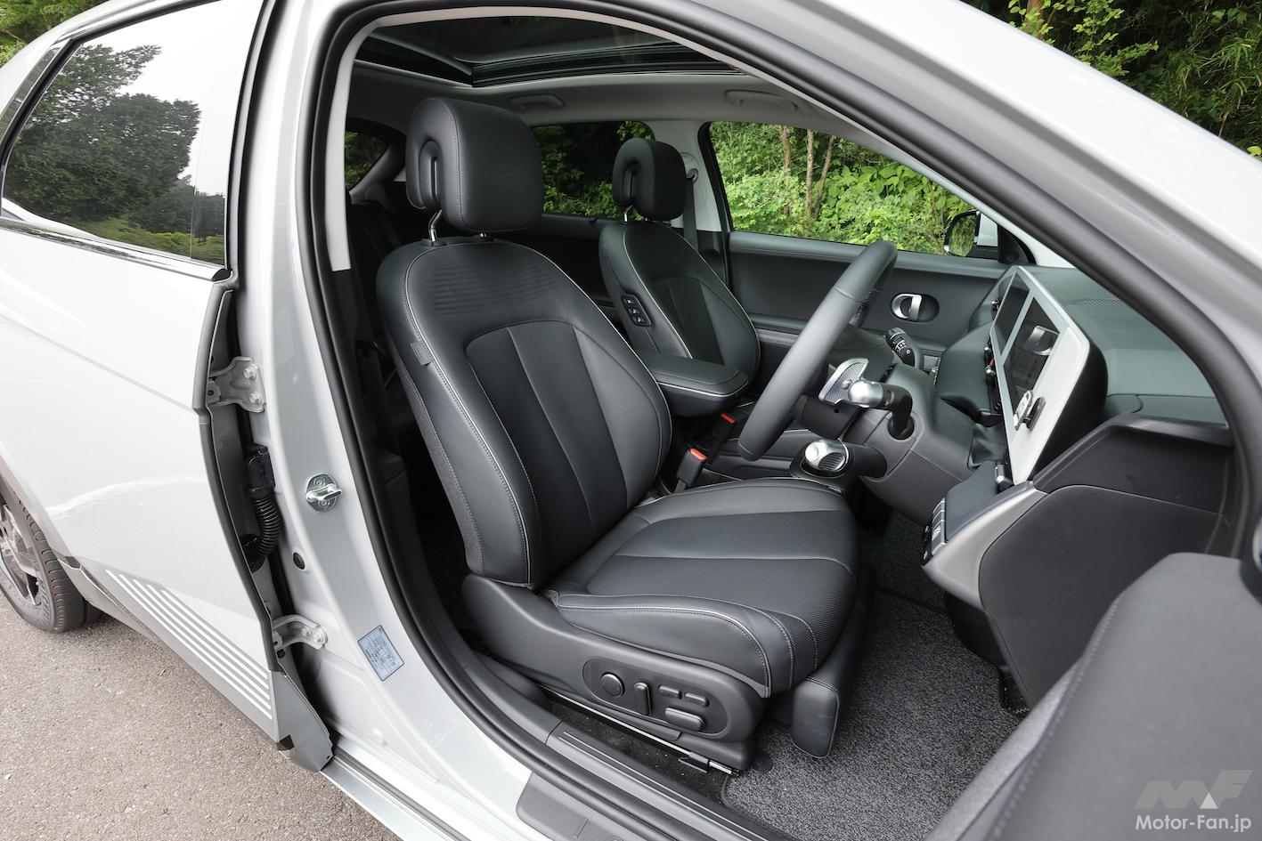 日本の各EVモデルはフロントボンネット内に動力源を持ち、少なからずモーター作動音が耳に届くが、ここは遠くにレイアウトしたリヤ駆動のIONIQ5に分があった。もっともリヤからのノイズの侵入は、モーター音よりもロードノイズのほうが大きいことは日本のEVヨンクモデルで確認済みだから、IONIQ5に関してはボディ剛性感の高さや徹底した遮音性対策が実を結んだとも言える。