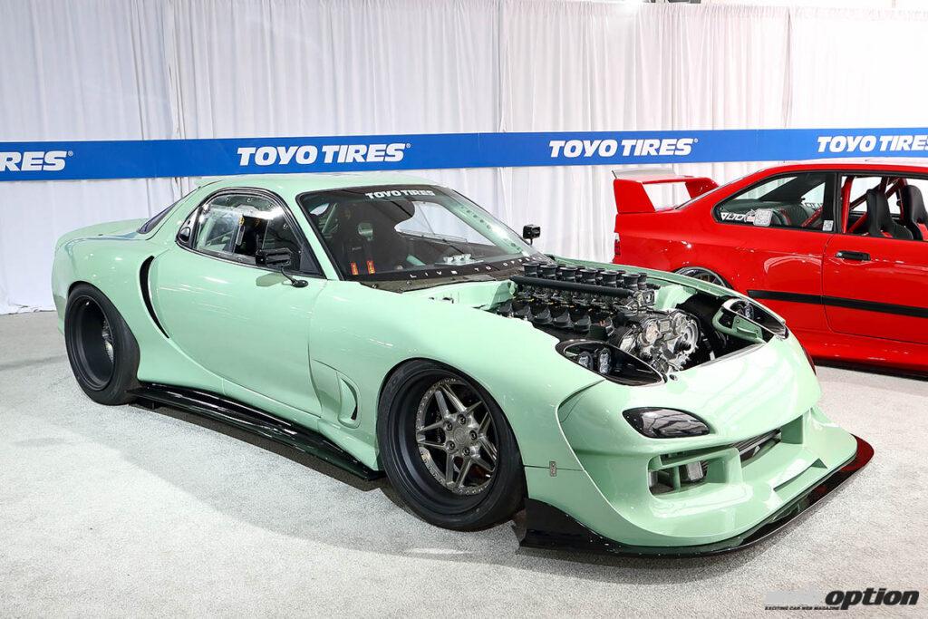 2017年のSEMAにV8を載せたFD3S型RX-7を出展して話題を呼んだフロリダ州のGooichi Motors。今度はなんとメルセデス・ベンツが90年代に各モデルに搭載していたM120型V12へとエンジンスワップ! エアロデザイナーのクィズィール・サリーム氏がデザインしたワイドボディキットも備わり、強烈な存在感を放っていた。