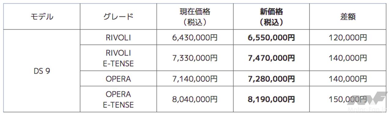 DSはフラッグシップサルーン「DS 9」の価格を、8月22日より変更。改定幅は2.0%だ。