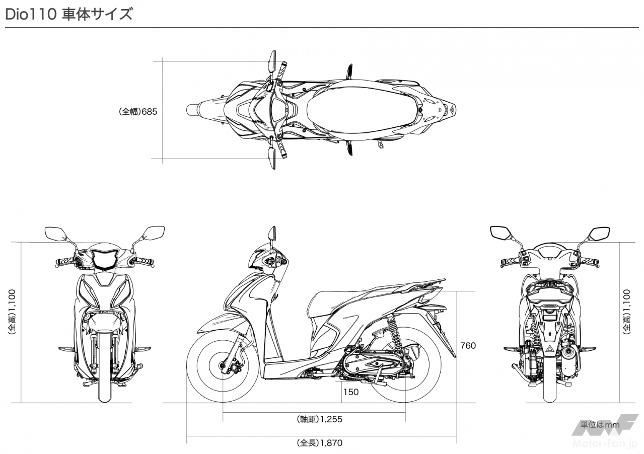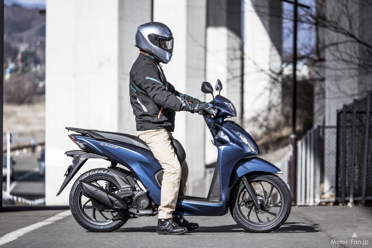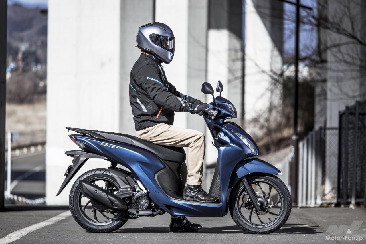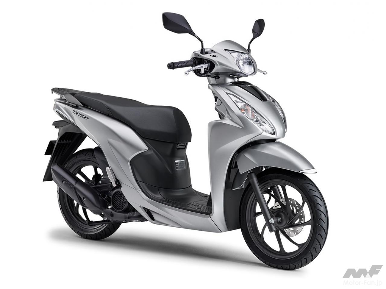 既報の通り新登場のDio 110 はフルモデルチェンジされている。踏襲されたスタイリングイメージが示す通り、前後14インチホイールの採用や、ステップスルータイプのフラットフロアを持つ基本デザインは同じ。
