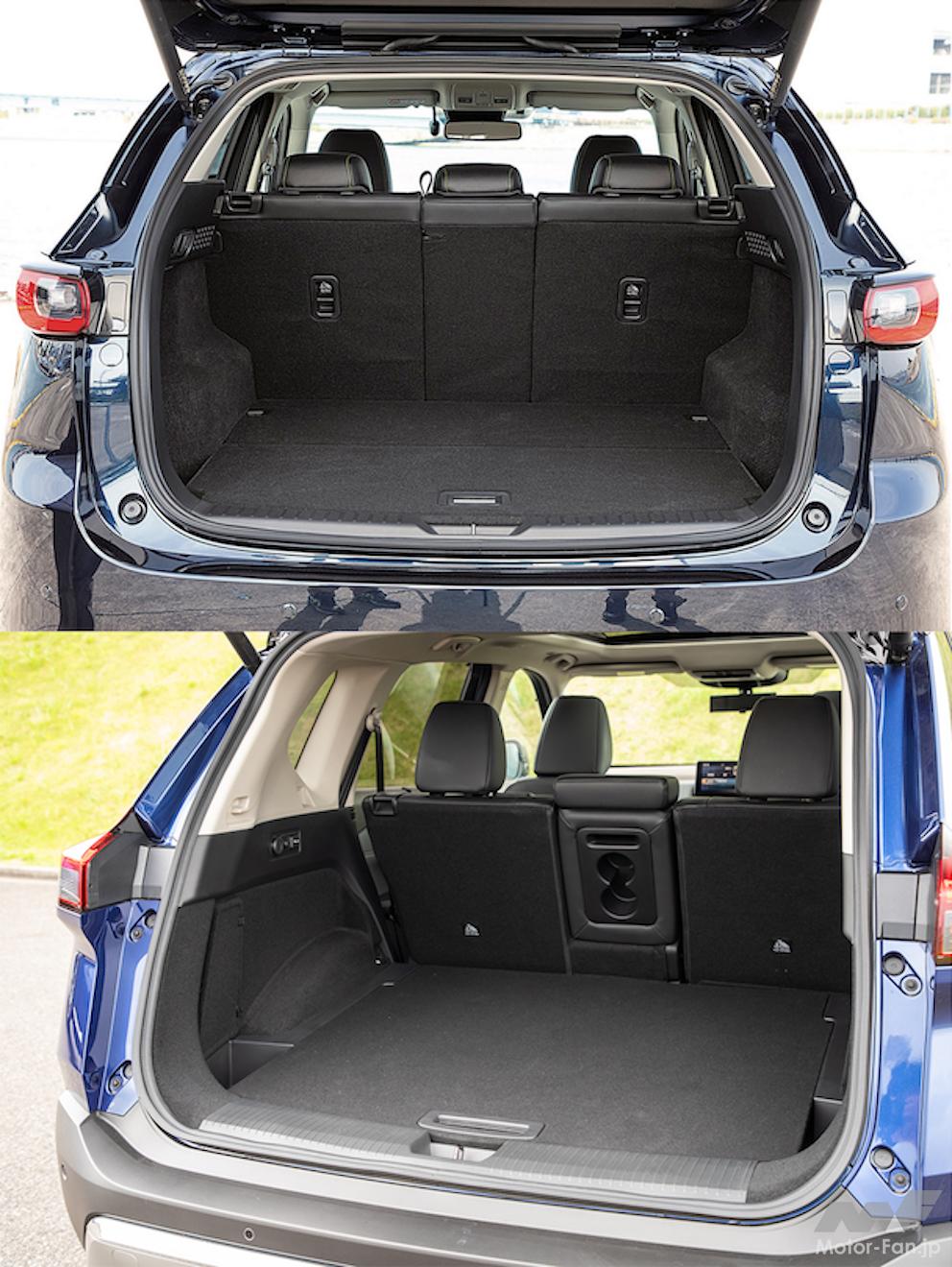 対するエクストレイルの荷室はMクラスSUVでクラストップの575ℓの容量を確保している。
