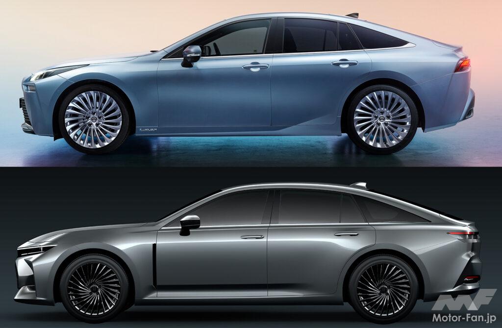 新型クラウン セダンがGA-Lを使うメリットは、MIRAIと同じ水素燃料電池車にできること、だと推測する。トヨタは豊田章男社長が常々発言しているとおり「次世代車は全方位で開発」している。コンベもハイブリッドもBEVも水素も、である。となると、法人や公官庁でのニーズが高いセダンが水素に対応するのは、あながち荒唐無稽なことではない。