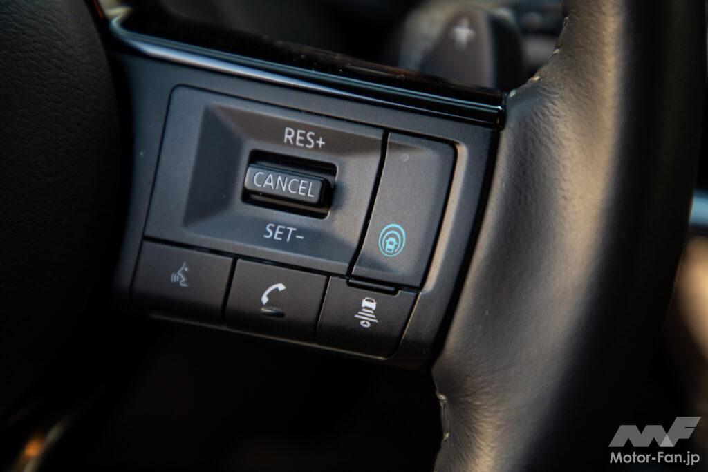 運転席からの見晴らしはもちろんいいのだが、シートの高さ自体は乗用車系プラットフォームを採用する最近のSUVとしては一般的。実際に運転席の座面前端の地上高は約720〜790mmの間に位置し、同じ日産のアリアが約710〜770mmであるのと大差ない。