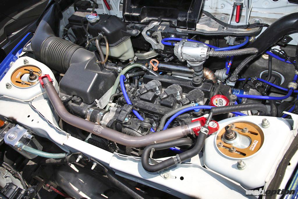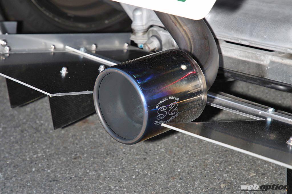もちろん、パワー系もしっかりと手が入れられている。ファンネルタイプのエアクリーナーはSSI製で、サクションパイプはワンオフ品。マフラーはSSIのフルチタンタイプ、オイルクーラーも追加されている。現在はノーマルタービンでHKSフラッシュエディター制御としているが、次なるステップとしてHKSのGT100タービンをリザルトジャパンのLINKフルコン制御にする予定になっている。