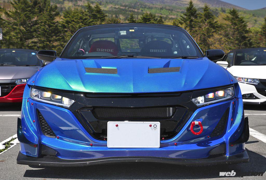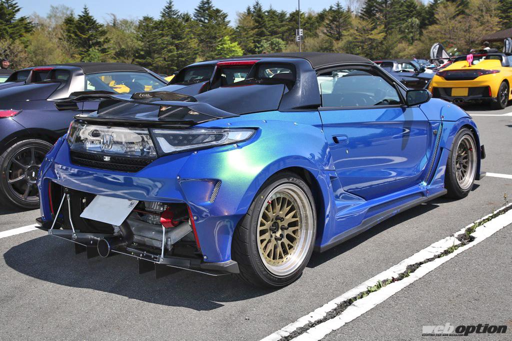 フロント30mm、リヤ75mmも拡大されたM&M製ワイドボディキット装着で、圧倒的な迫力を獲得しているのが“130R”さんのS660。20年以上乗り続けているビートの血を引くモデルということで、2017年にアルファグレードを新車で購入(増車)したものだ。