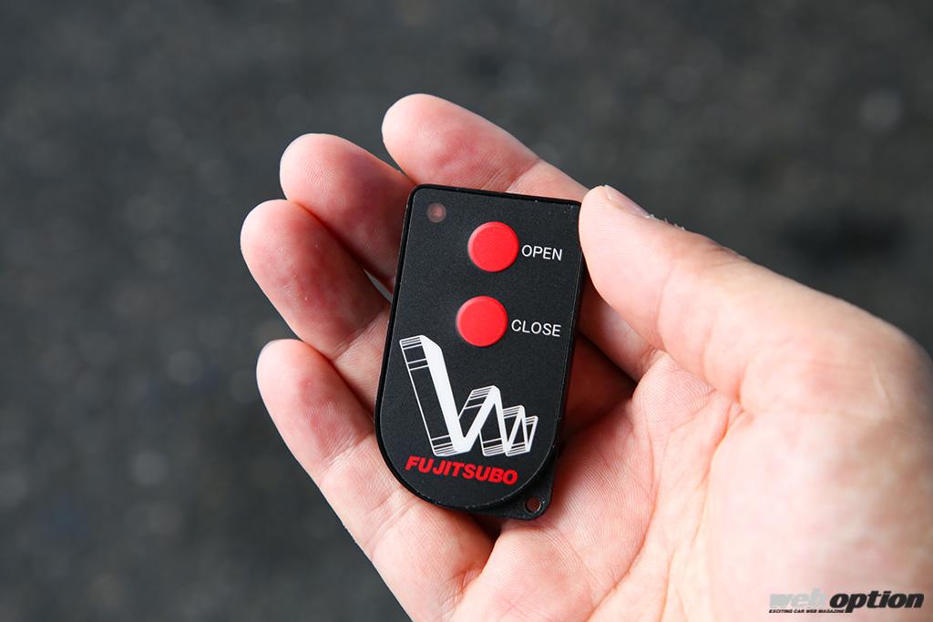 可変バルブを操作するのは、手のひらに収まるくらい小さなカード型のリモコン。単純な音量調整のみならず、低速時や坂道などトルクが欲しい時にはバルブを閉じて、ワインディングや高速走行などパワーを必要とする時にはバルブ全開…など、パフォーマンスを使い分けて楽しむことができるのだ。