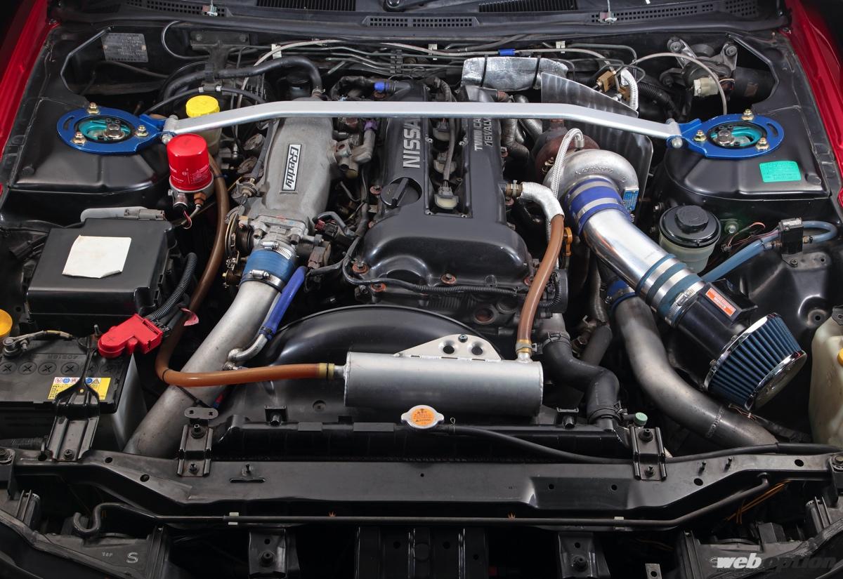 競技ドリフト用として進化を続けたエンジンは、東名パワードのコンプリートユニット「DERIVEフェイズ1」を軸に構築。そこにTD06S L2-20Gをドッキングし、横浜のチューニングショップ“ビーアンビシャス”による綿密なパワーFC制御を組み合わせることで、約380psの最大パワーを手にしている。