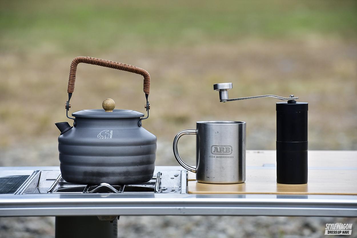 クルマ以外でも、キッチンテーブルやチェア、クーラーボックスなど、アウトドアグッズも一つ一つ吟味して購入。コーヒーにも並々ならぬこだわりを持っており、キャンプ直前にお気に入りの都内コーヒーショップに出向き、豆を仕入れてから出掛けるほど。