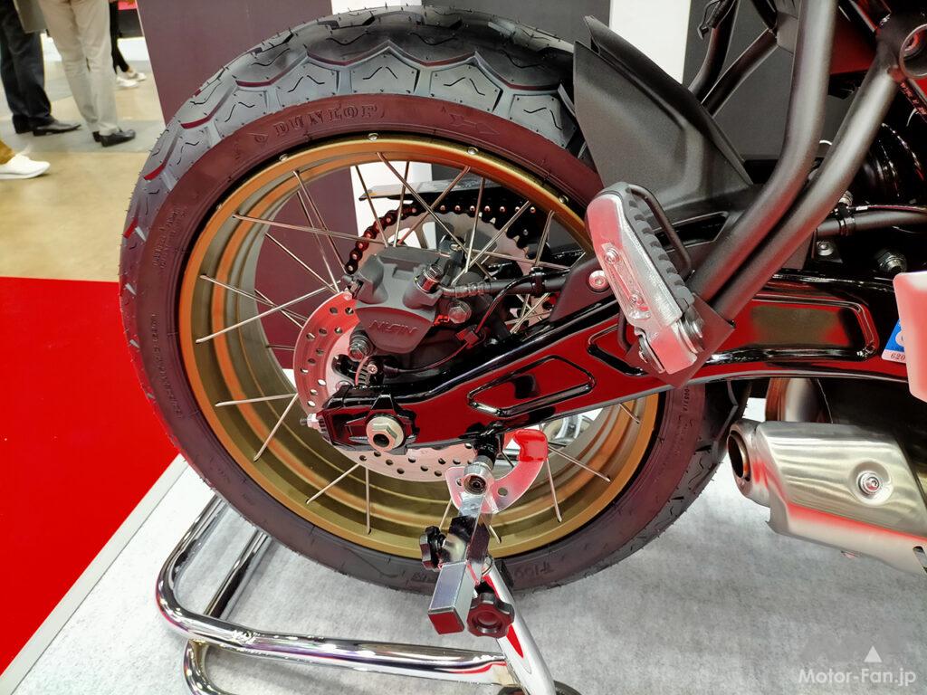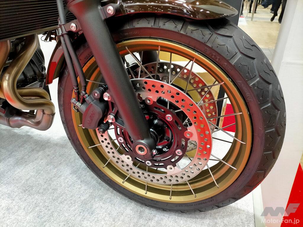スポークは錆に強いステンレス製を採用。性能面を犠牲にせず、レトロな外観が獲得できるZ650RS専用の「SPOKE WHEELS TypeC(クラシックチューブレス)」は2023年7月発売予定。D.I.DではZ650RS用に加え、Z900RS用の発売も予定している。