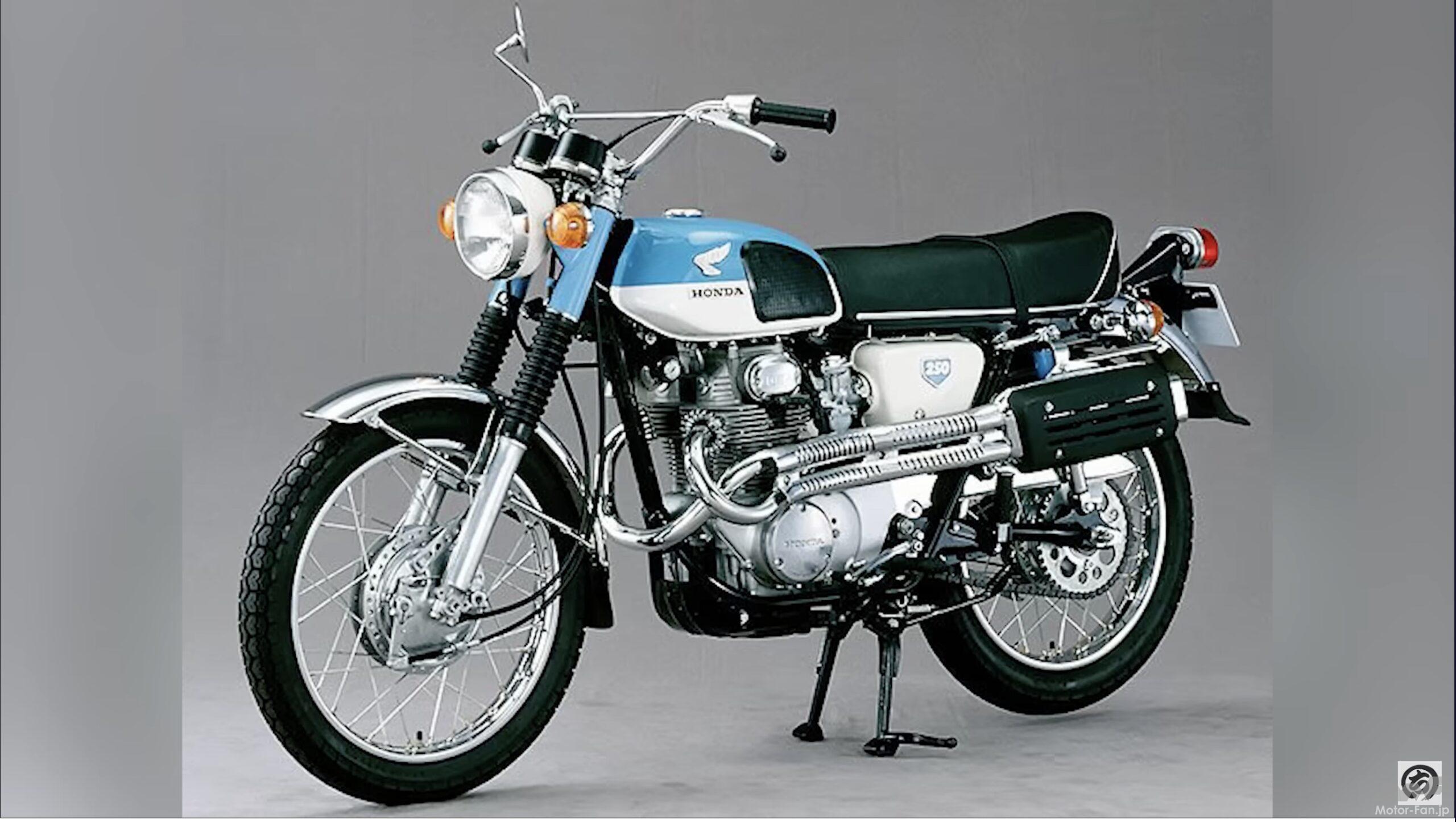ところでスクランブラーモデルとはどのようなバイクのことなのだろう。その歴史は古く1960年代まで遡る。以前はオフロードに特化したモデルがなく、オンロードバイクでオフロードも走っていた。そこで’60年代のアメリカでオフロード向けに車体をモディファイすることが流行する。これを受けてホンダはロード向けスポーツバイクの装備や仕様を変更したスクランブラーモデルを発売する。それがCLなのだ。だからホンダはCLと名のつくモデルを連綿と作り続けてきた。古くは1962年に発売されたCL72に始まり、1968年にはCL250へ生まれ変わっている。