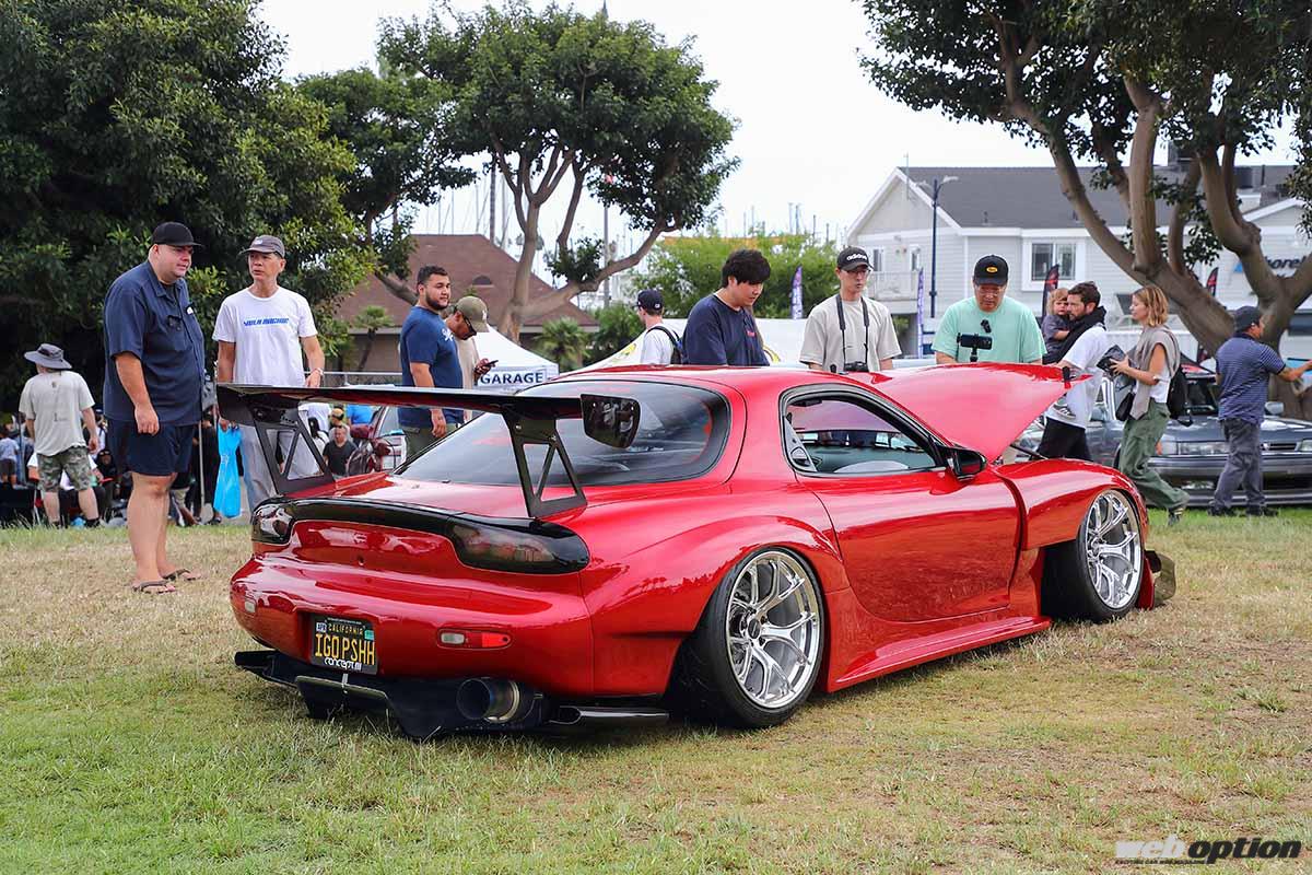 13B-REWロータリーエンジンを降ろして、1JZ-GTE型直6ターボに換装したFD3S。トランスミッションには日産のZ33などに使用されるCD009型6速MTを合体してある。RE雨宮のボディキット、Driftzのホイール、R1コンセプトのビッグブレーキを装着し、チタン製の大径マフラーも装備。車高はエアサスで落としてあり、ショー映えするスタンスを生み出している。