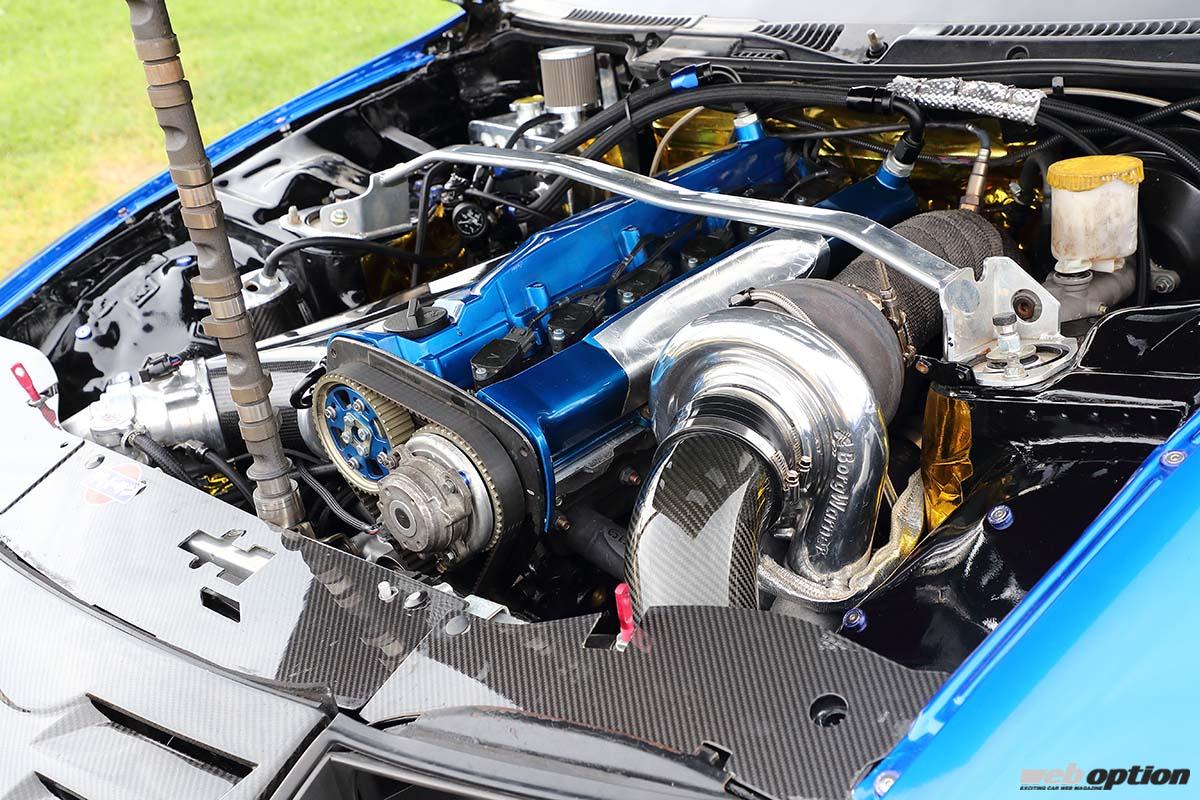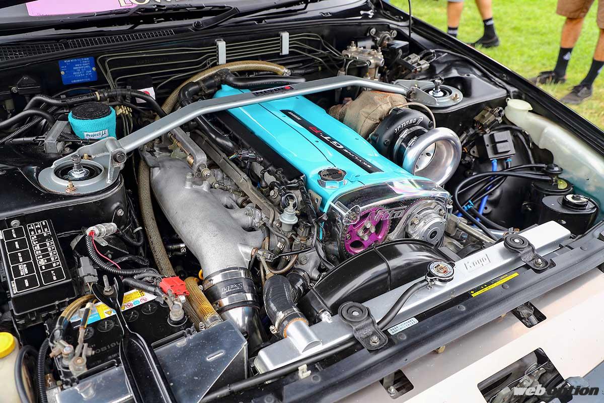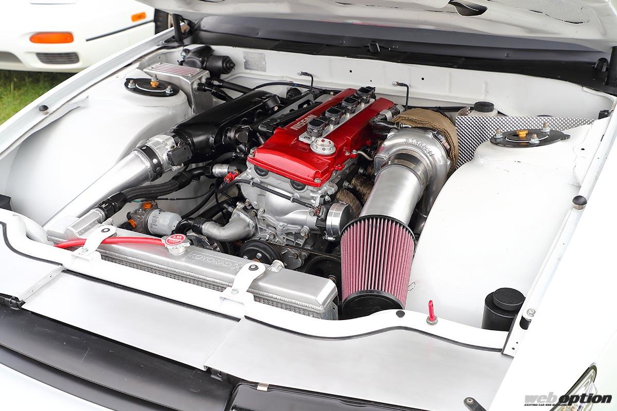 アメリカでは2.4LのKA24DE型直列4気筒エンジンを搭載するS13型のシルビア(車名は240SX)。それをターボ&ダイレクトイグニッション化するとともに、オリジナルのサイクルフェンダーを備えた美しいエンジンルームを実現。アメリカでも割と外観の美しさを度外視して走りに振った車両も多い240SXだが、これほど隅々まで手が加わったショーカーレベルのクルマは珍しい。