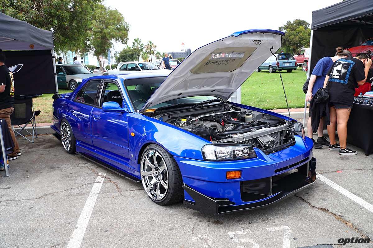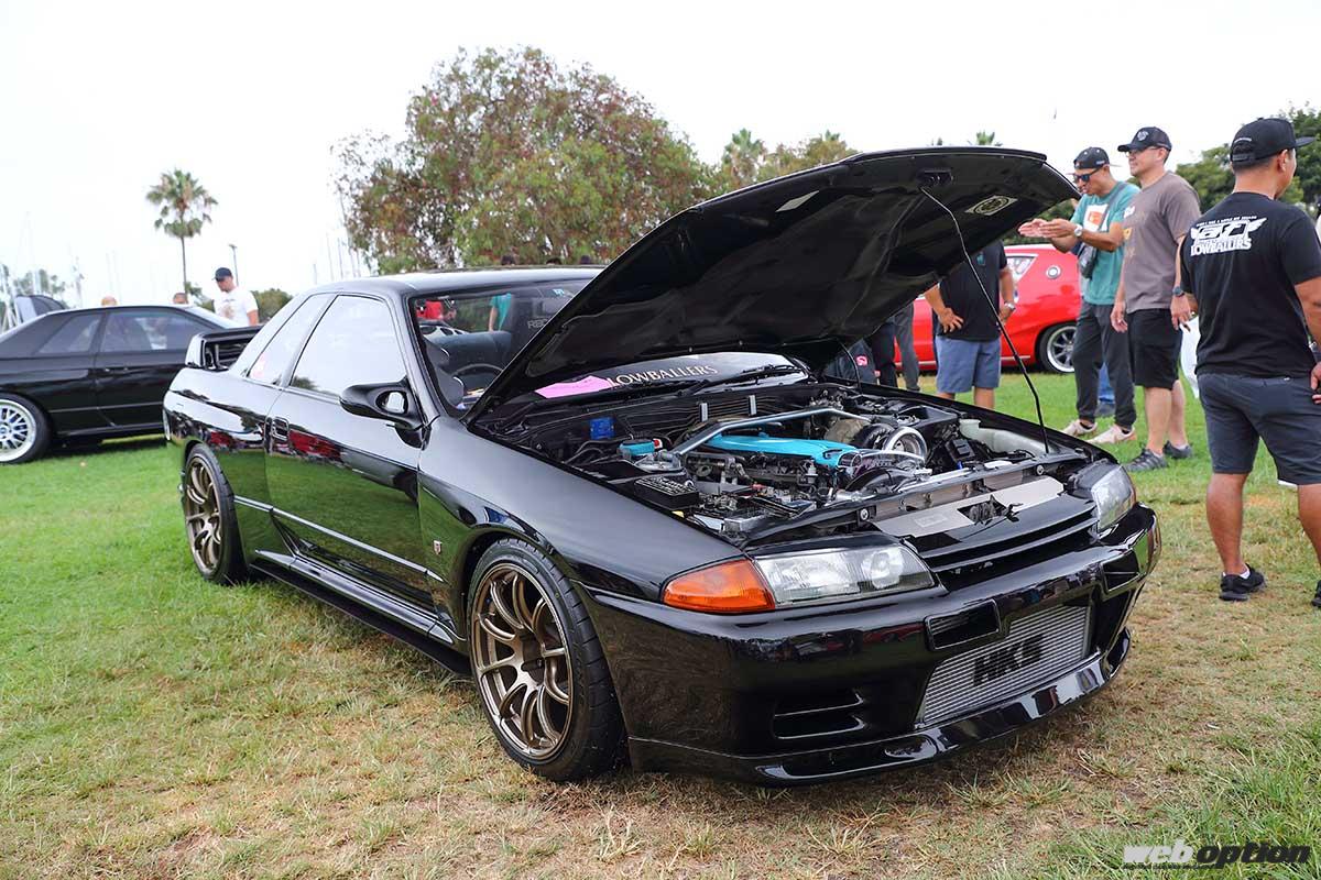 ここ数年、JCCSの会場でもよく見かけるようになってきたR32型スカイラインGT-R。アメリカに輸入される台数が増えているとはいえ、仮にカリフォルニア州で登録しようと思うとスモッグチェックをクリアするのに相当の経費がかかることから、庶民にとって高嶺の花であることに変わりはない。ということで、サーキット走行やイベントでの展示などに割り切った車両が徐々に増えてきた印象だ。こちらの車両もまだ発展途上な印象だが、今後アメリカで第二世代スカイラインやRB26のチューニングがどのように発展していくのか楽しみである。