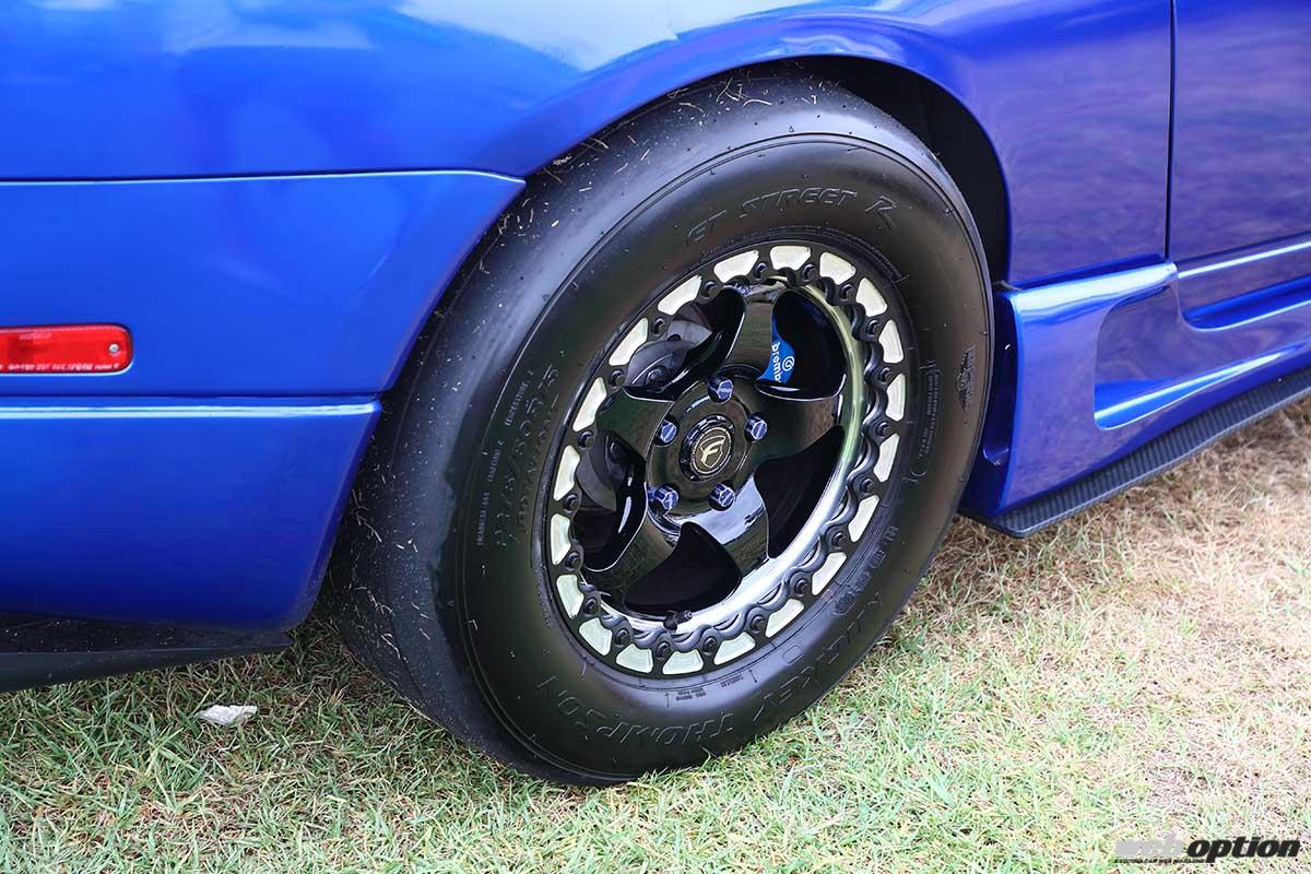 同じ300ZXでも対照的なエンジンスワップ仕様がこちら。中東ドバイ仕様の日産パトロールに搭載されていた、RB30型直列6気筒のブロックとRB25型NEOのシリンダーヘッドを組み合わせたRBスワップを実現。R32のベルハウジングを流用してZ32の5速MTと接続してある。ボルグワーナーS369SXEタービンを6boost製ツインスクロールターボマニホールドでマウントし、CPC製カーボンインテークマニホールドも装着。リヤのタイヤ&ホイールには、Forgestarのビードロック付き鍛造ホイールと、ミッキートンプソンのETストリートRを組み合わせる。