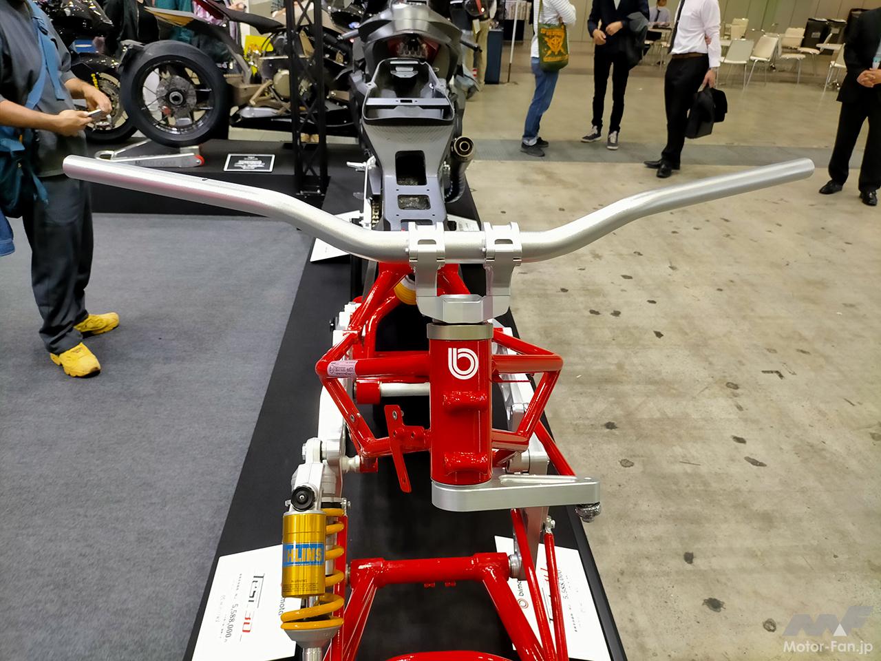 クロームモリブデンパイプは高価で加工の難しい素材。しかし「最良」を追求するために、あえてこの素材を導入しているのがポイント。複雑に組み合わされたトラスパイプには、オーリンズ製リザーブタンク付きショックアブソーバーを1本組み合わせ。