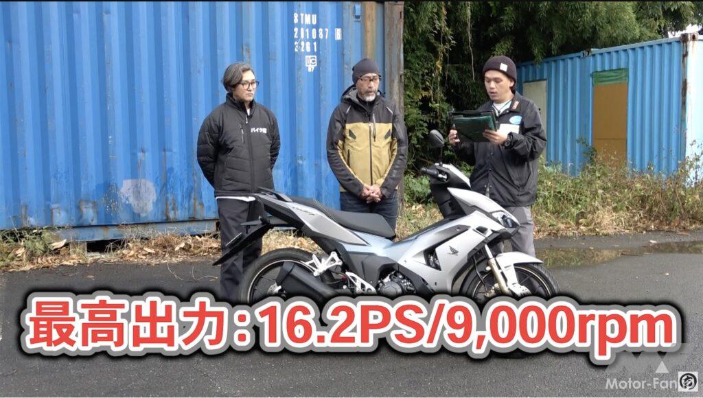 ウィナーX150はアンダーボーンフレームに前後17インチタイヤ、149cc水冷単気筒DOHCエンジンと6速ミッションを組み合わせたモデル。スクーターのようにも見えるがれっきとしたスポーツモデルなのだ。実はこの単気筒エンジンはCBR150Rのもの。高回転型のスポーツエンジンそのもので、最高出力は16.2ps/9000rpmとなっている。