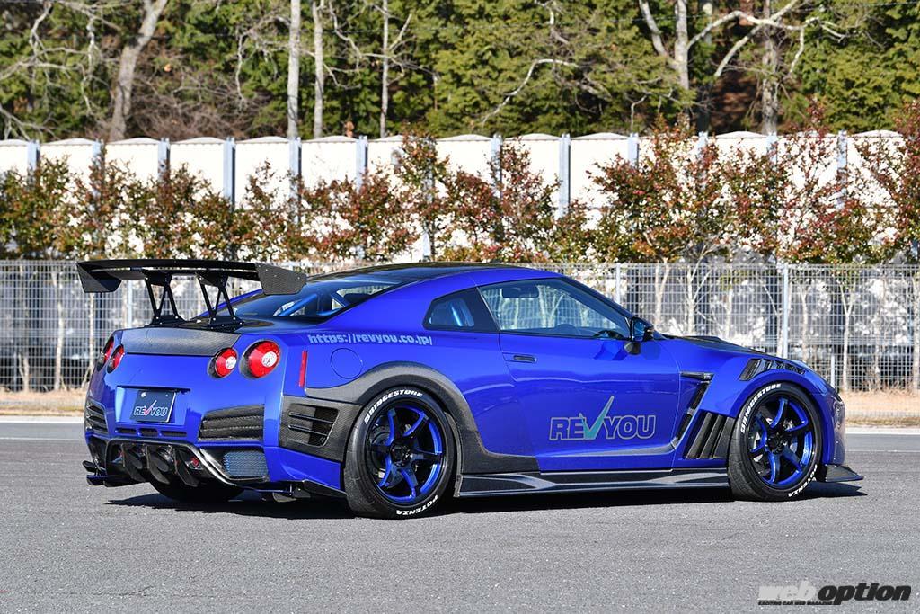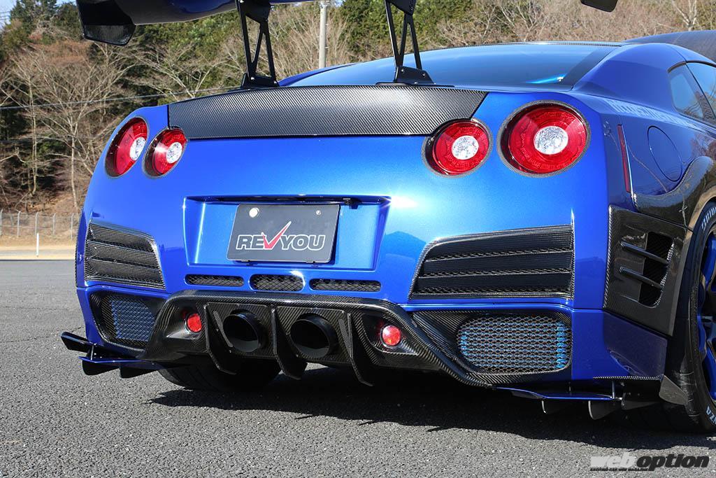 今回紹介するR35GT-Rは、千葉県の実力派チューナー“カーメイキングレヴュー”が手がけたオーナーカーだ。初期型の2008年モデルをベースにした“見た目最速”のブーストアップ仕様で、カーボンマテリアルを随所に取り入れることで唯一無二の1台へと昇華。カーボンとブルーのツートン仕上げが斬新だ。