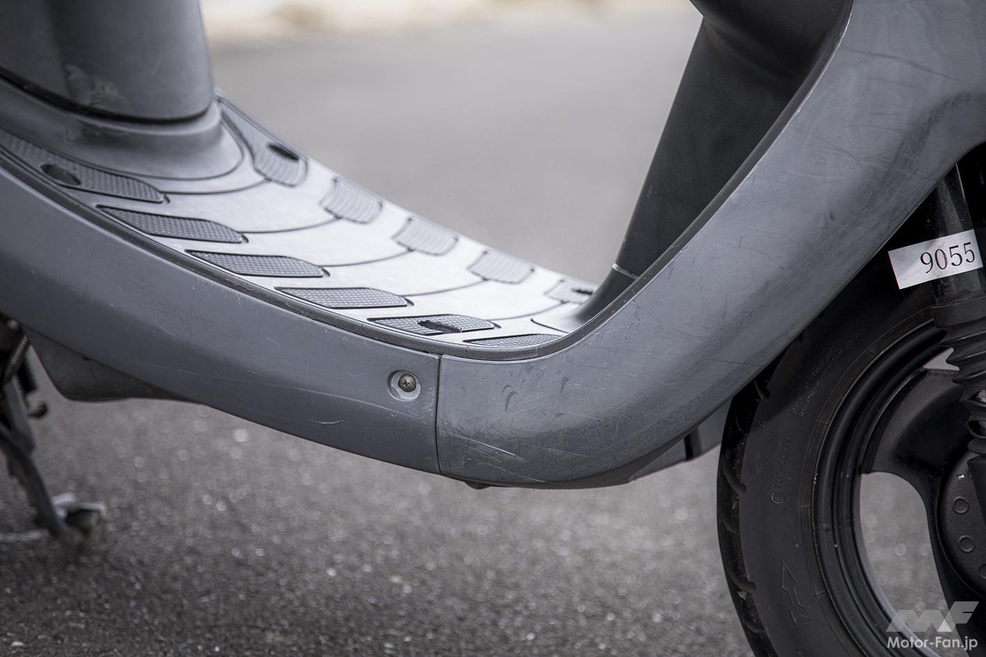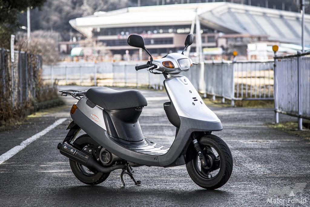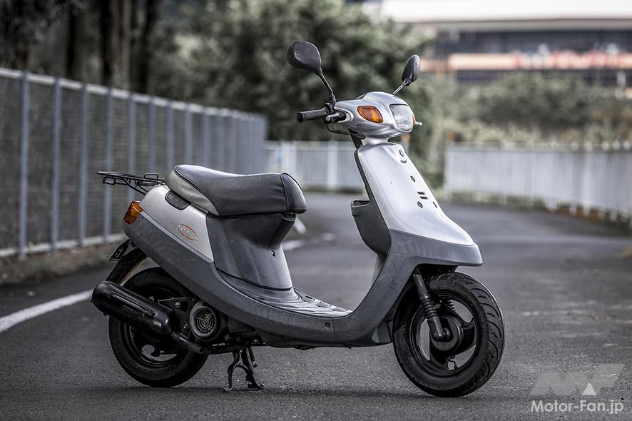 筆者所有のJOGアプリオ。インナーカウルや駆動系カバーに樹脂パーツが使われていますが、発売から20年経過とあってやっぱり白くあせています。年式相応とも言えますが、やっぱりきれいにしたい。
