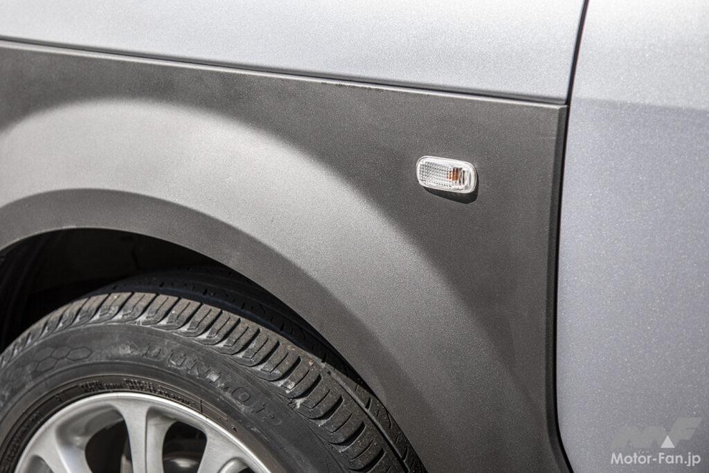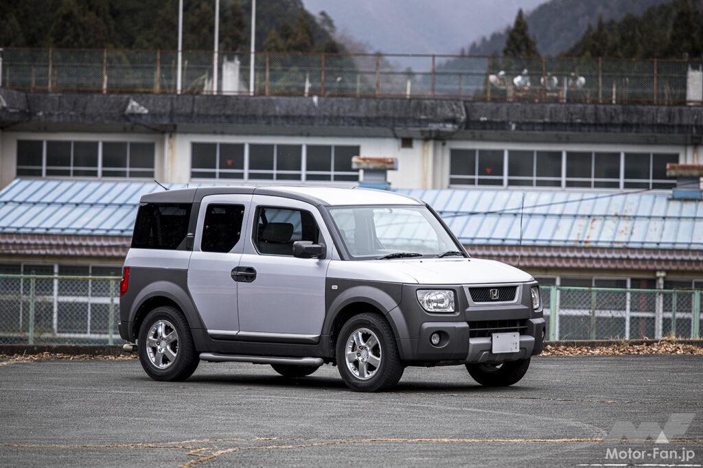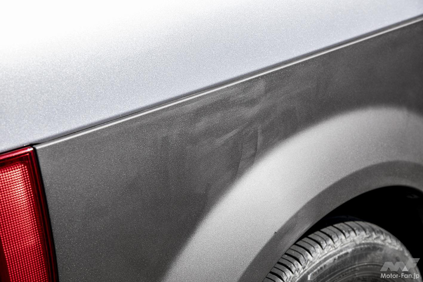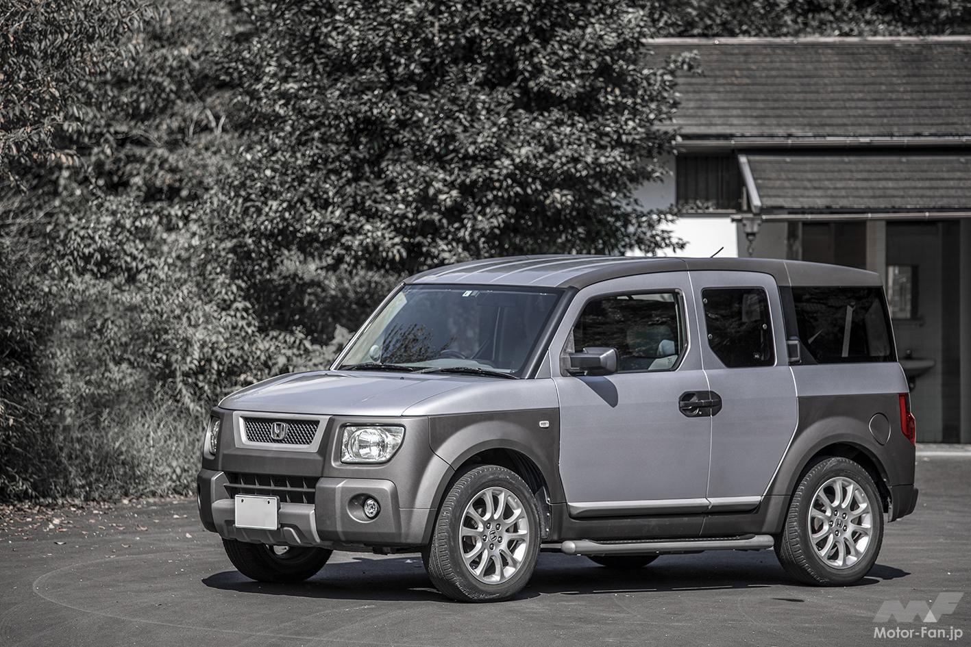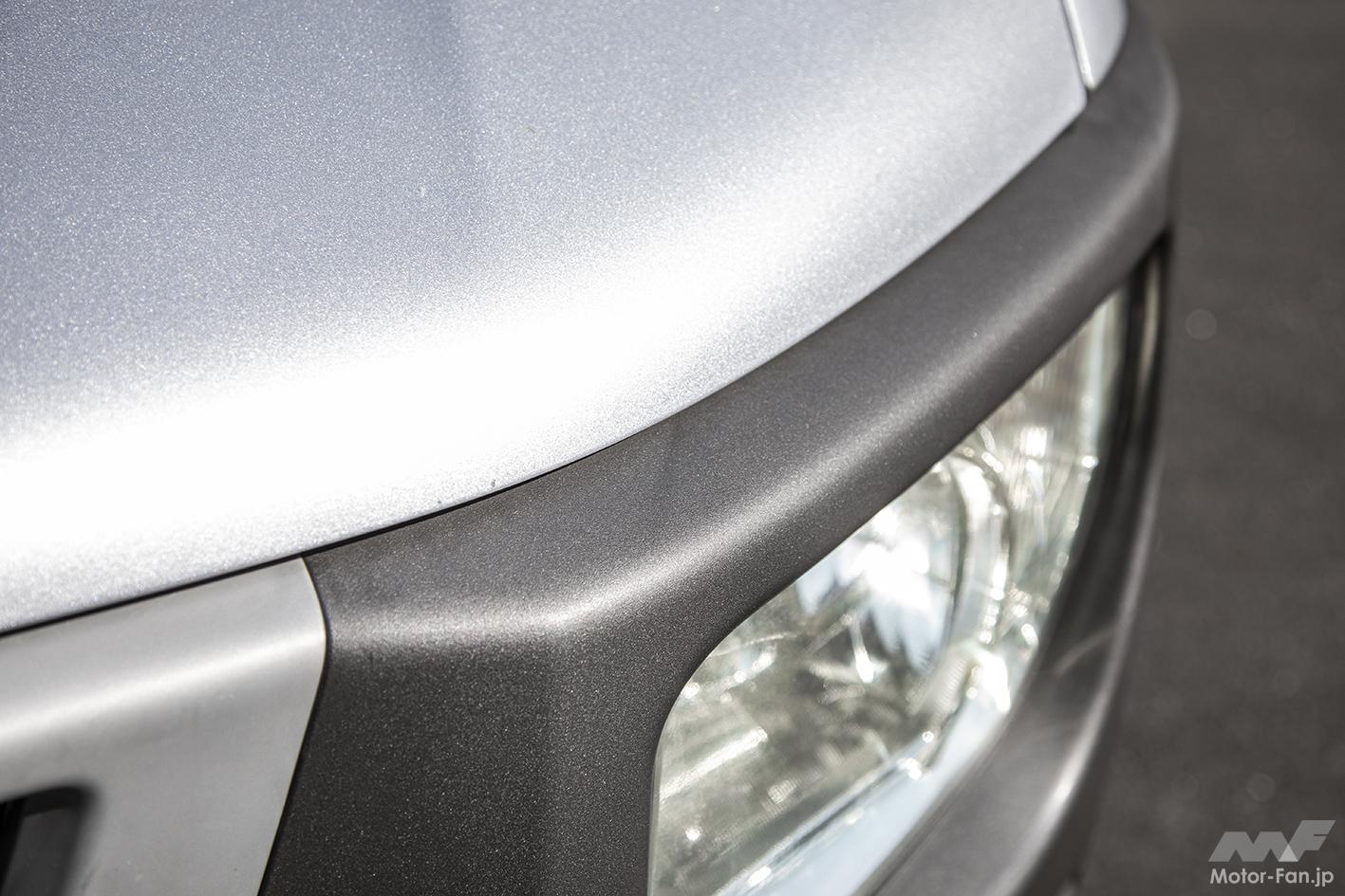 筆者の自家用車、ホンダ・エレメント(2003年式)も樹脂パーツだらけなので試してみることに。劣化によって現れた白い色あせと、まるで肉割れのような線をなんとかしたいところ。