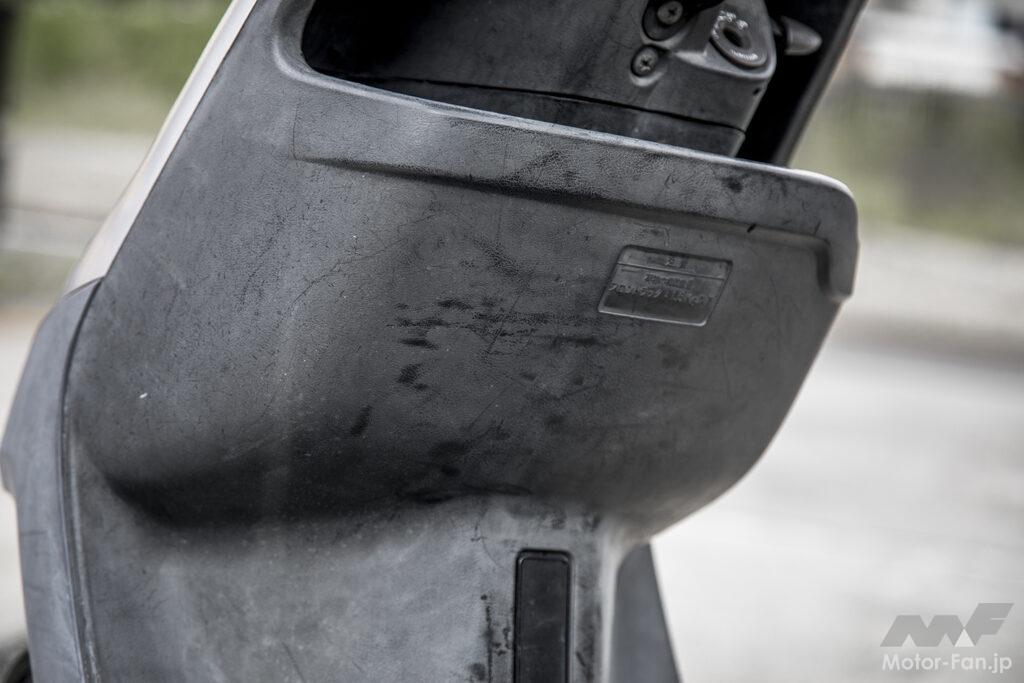 新品の時は黒くてツヤツヤだった樹脂パーツが、経年劣化で樹脂内の油分が抜けることによって、白くあせたり、まだら模様になってしまうのは、“バイクあるある”の1つでしょう。