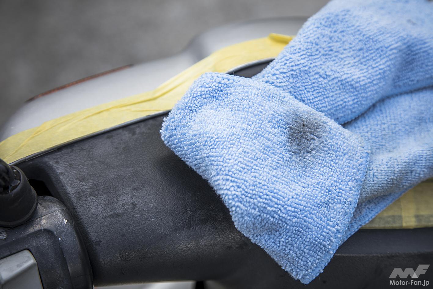 明るい色の樹脂の場合、泥など日常の汚れが染み込んでいることがある。仕上がり時のむらの原因になってしまうのでこの汚れもできるかぎりしっかり落としてあげよう。