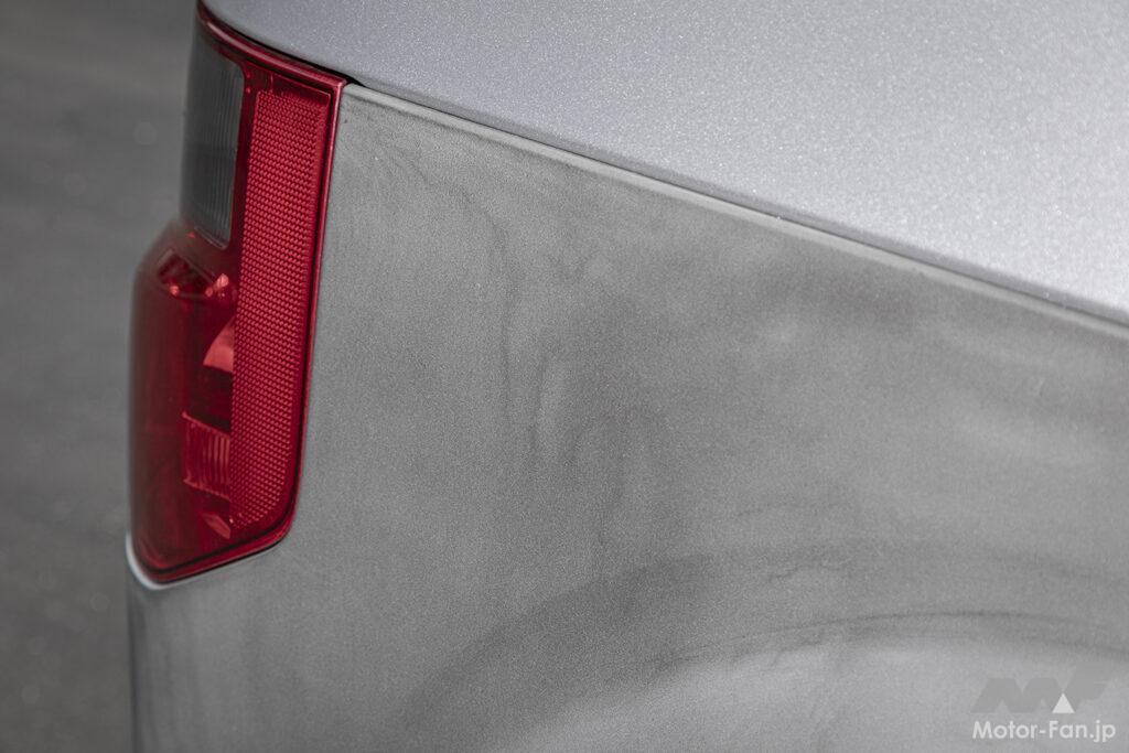よく見ると、部分的に白い色あせがチラホラ。ただ全体的にはまだスーパーハードの効果は残っている。ディテール写真にいくつも写りこむ細く白い線は雪なので悪しからず。