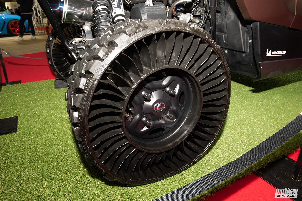 ブロンズ×ブラックの「アイアインオキサイド」と呼ぶ、ツートーンボディに代表されるオールオリジナルとなる外観には、オフロードっぽさをストレートに表現しつつ、近年のレクサス車に通じるデザインアイデンティティを随所に注入。単なる意匠性だけでなく、石や泥ハネを防ぎ、耐久性にも配慮している。
