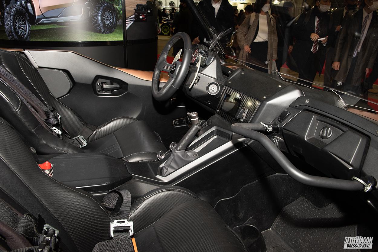 ベースとなったのはヤマハ製の市販バギー。エンジンを独自に水素化し、CO2排出量をほぼゼロにおさえるなど環境へ配慮しつつ、エンジン車ならではの走る楽しみも兼ね備えた次世代ビークルとなっている。