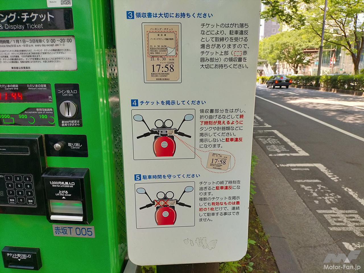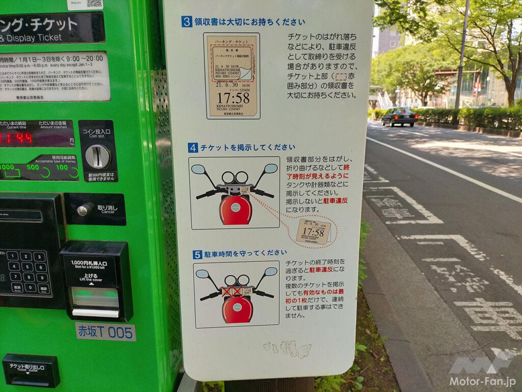 このバイク専用路上駐車スペースが設置されたのは、バイク駐車場不足が問題視されていた2009年11月30日。これまで四輪車用のみだった道路上の白枠+100円コイン用のパーキングメーターを、パーキングチケット式のバイク専用路上駐車スペースに変更。導入時は「表参道にバイク専用エリアが生まれた」と、ニュース等でも話題になった。