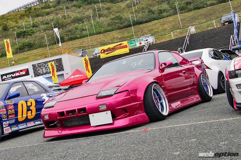 日本で言うワンビア仕様(シルビアの180SXフェイス)の240SXだ。オーナーは群馬県の走り屋で、何とこの取材日が納車日という奇跡! これまで某有名峠を走っていたが、これを機にドレスアップ系イベントにも参加できるカスタムを軸にすることも検討しているという。