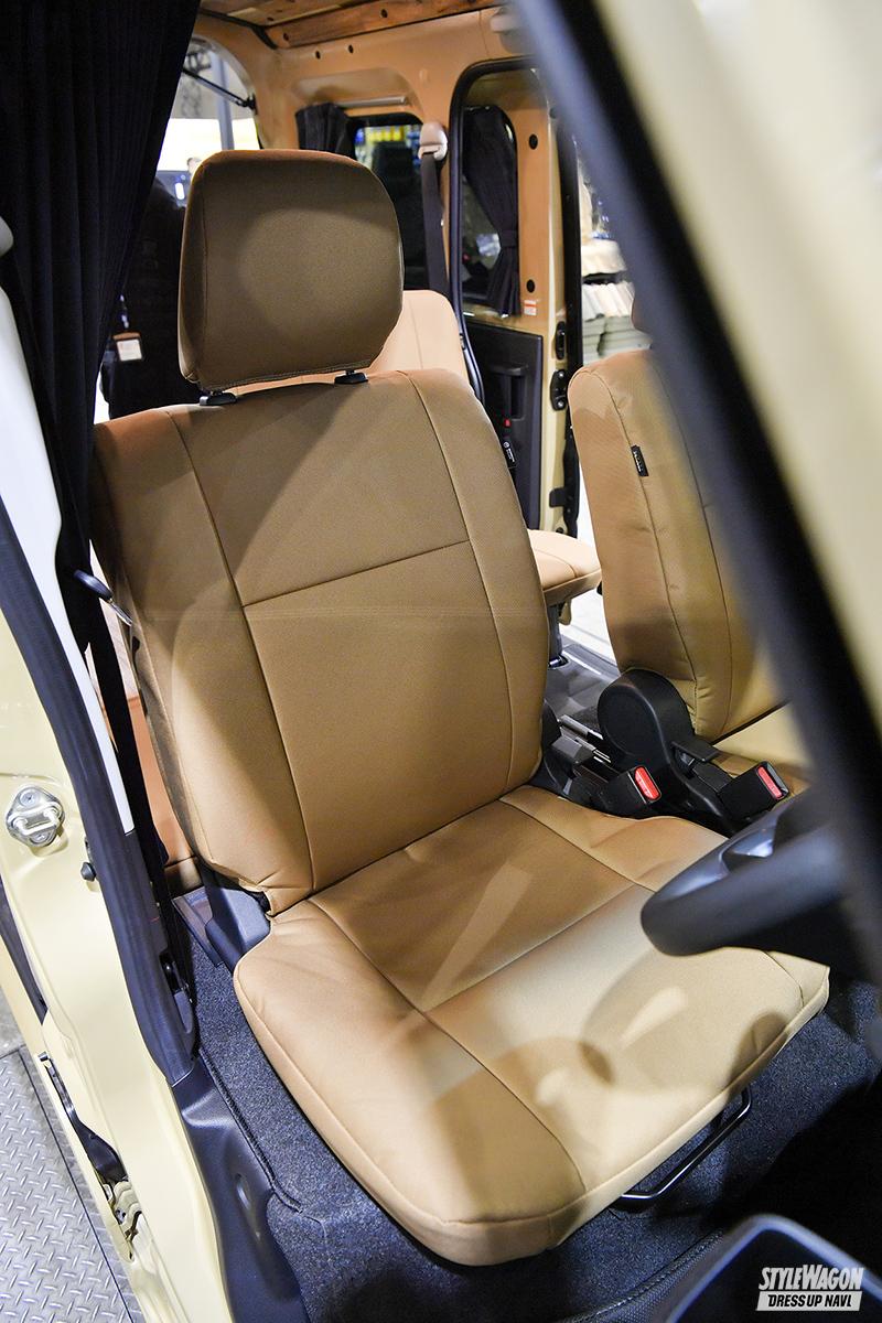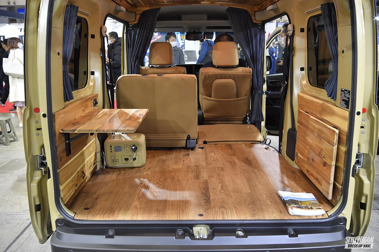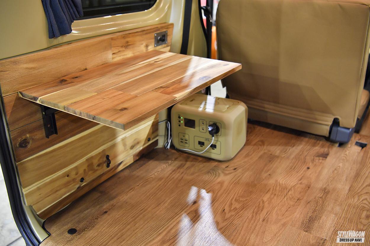 GORDON MILLER MOTORS/ゴードンミラーモータースベース車両はダイハツのハイゼットカーゴで、クルーズターボやパワースライドドア、スマートインナーミラーなども装備される。ボディ色はオリーブドラブ、コヨーテの2色。カーゴの両壁面にはフリップ型の格納式テーブルが設置される。車中泊やキャンプで便利な機能性と、シンプルで広いくつろぎスペースを確保した内装だ。内装に使用されているのは天然のアカシア材で、使い込むほどに味わいが増すログハウスのような印象。必要最小限の装備だから、好みのカスタムも追加しやすい。丸いヘッドライトにオリジナルのグリルなどを採用し、エクステリアはクラシカルなテイストに。ボディはダイハツ純正と同じ工場で塗装しており、耐久性も極上。