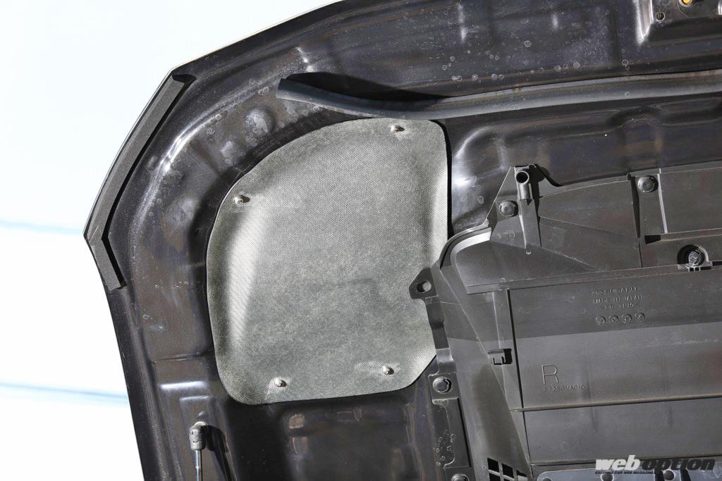 エンジンルームの熱気が効果的に排出できるようになるフェンダープロテクター(4万293円)は人気アイテム。カーボン素材を採用しているため、エンジンルームのドレスアップにも最適だ。