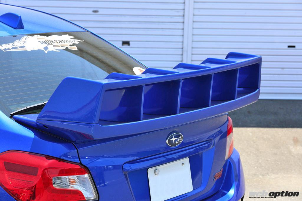 GDBのWRカーをモチーフとしたというスプリッターウイング(16万6980円)は、何と6ピース構造という渾身の作。圧倒的な存在感を醸し出すのはもちろん、強力なダウンフォースも期待できる。トランクの上に覆うように装着するタイプで、純正色塗装済のみを設定だ。