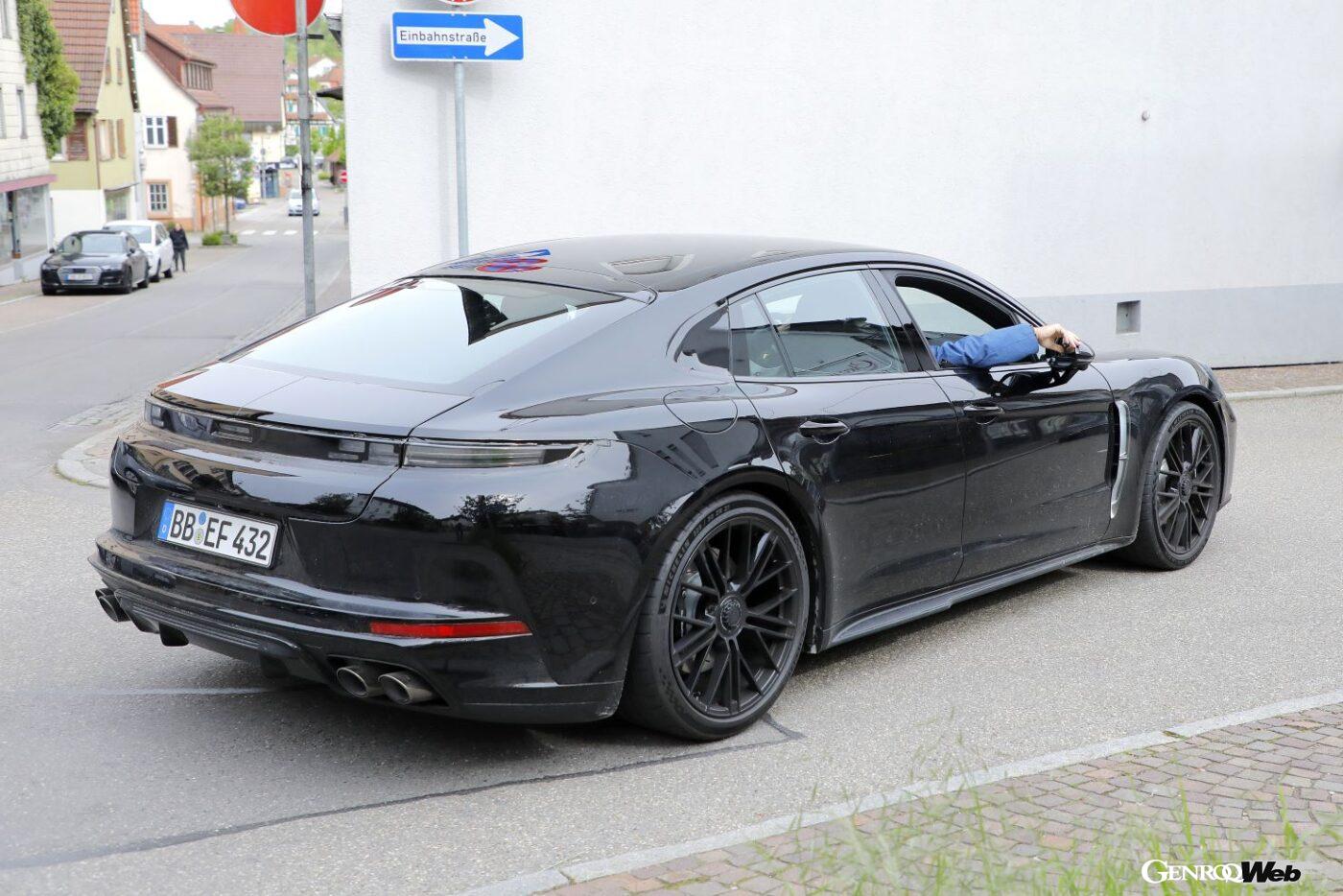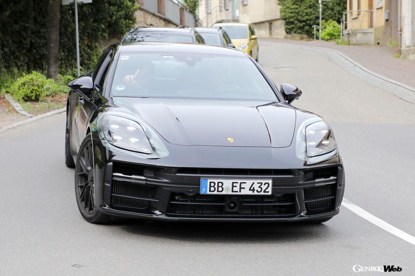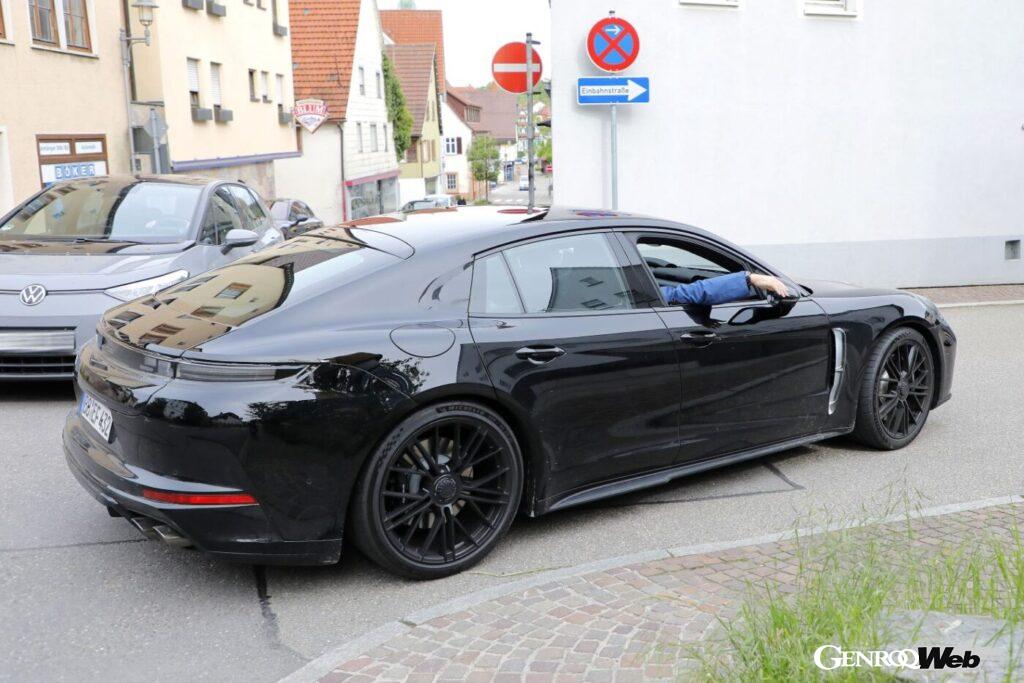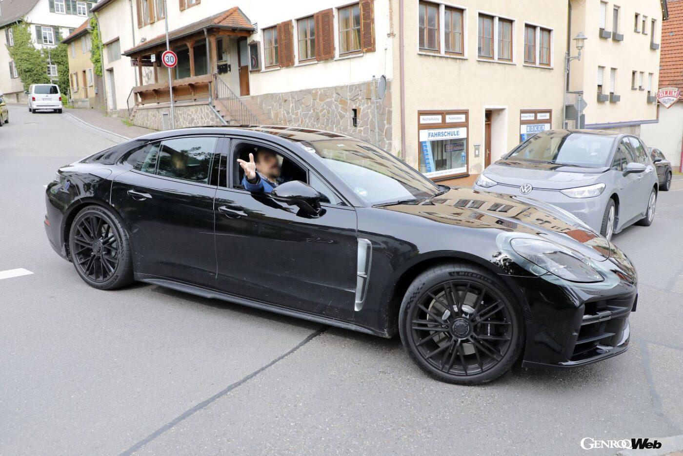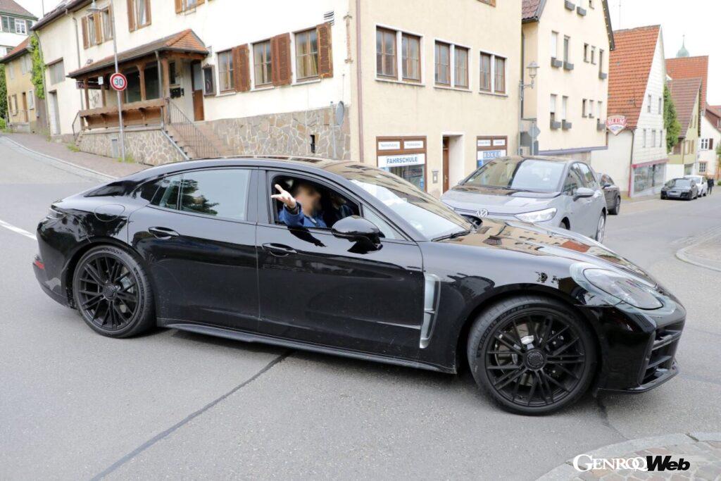 スタイリングは、タイカンの要素を採用することで未来的に演出しているようだ。パワーユニットは不明だが、以前のスパイショットでは給油口/充電ソケット用とみられる “ドア”が2つ確認されている。したがって、ハイブリッドシステムが採用されると見られる。今回のスパイショットは助手席側しか写っていないため、テスト車両が運転席側に充電ポートを備えていたかどうかを確認することはできない。