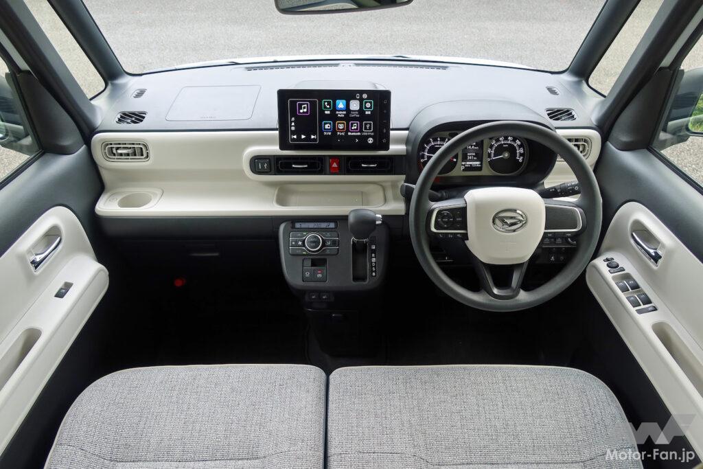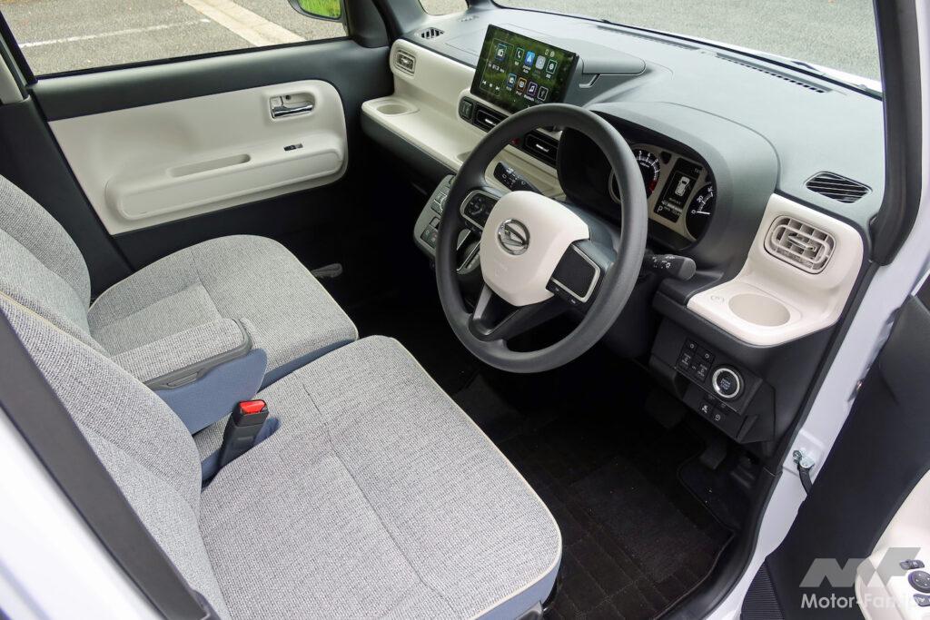 需要はあるのに取りこぼしていたわけだ。新型では、前型で取りこぼしていたこうしたユーザーをすくい取るべく、セオリーというシックな内外装を持つグレードを用意した。ボディカラーはモノトーンで、メッキ調のピンストライプが側面に入るのが特徴。インテリアは深みのあるブラウンとネイビーの組み合わせで落ち着いたムードを漂わせている。もちろん、世代を問わず女性がセオリーを選んでもいいし、大人の男性がポップな2トーンのボディカラーと、ホワイトを基調とした明るいインテリアのストライプスを選んでもいい。筆者の気持ちはストライプスに傾いている。明るく居心地のいいインテリアが気に入った。