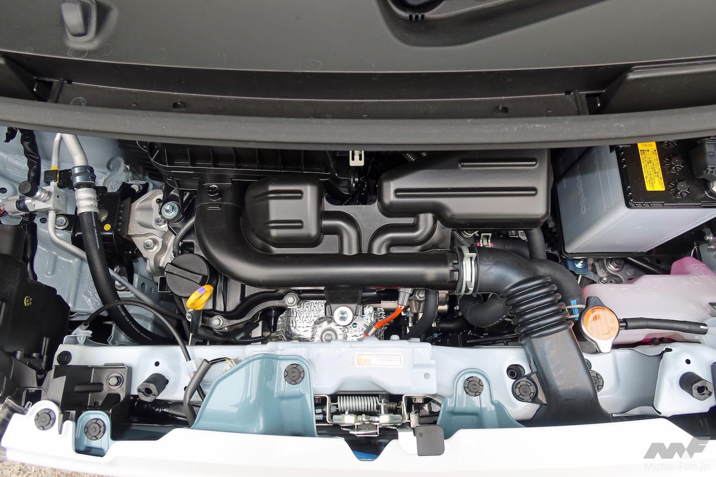 NAのエンジンが高回転まで回っても騒々しくないのは、プラットフォームがDNGA(Daihatsu New Global Architecture)と呼ぶ最新世代に切り替わったのが大きい(2019年のタントが初出し)。これにより、衝突安全性をはじめ、乗り心地や走りに効く剛性や振動・騒音面など、およそ安全性や走りや快適性に効果がある領域が全体的にレベルアップした。エンジンが高回転まで回っても騒々しくないのは、DNGAを適用した効果のひとつだし、乗り味が全般的にシャキッとした。