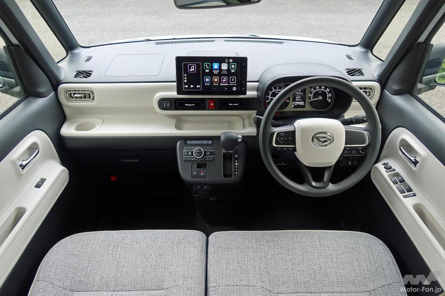 だったら2代目はそっちもしっかりターゲットに据えて開発しようということになった。そこで、新型ムーヴ・キャンバスは2本立ての構成とした。ひとつは初代で好評だったかわいらしさを継承した「ストライプス」で、最新のトレンドに合わせてすっきりと洗練されたムードでまとめた。ストライプスの名称は2トーンのボディカラーを表すオプション名として初代から存在しており、新型ではグレード名として独立させた格好だ。