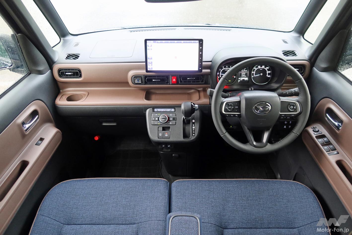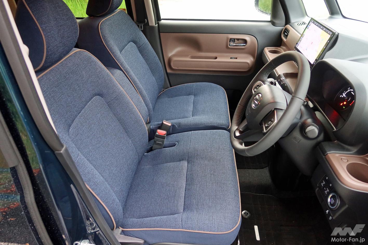 需要はあるのに取りこぼしていたわけだ。新型では、前型で取りこぼしていたこうしたユーザーをすくい取るべく、セオリーというシックな内外装を持つグレードを用意した。ボディカラーはモノトーンで、メッキ調のピンストライプが側面に入るのが特徴。インテリアは深みのあるブラウンとネイビーの組み合わせで落ち着いたムードを漂わせている。もちろん、世代を問わず女性がセオリーを選んでもいいし、大人の男性がポップな2トーンのボディカラーと、ホワイトを基調とした明るいインテリアのストライプスを選んでもいい。筆者の気持ちはストライプスに傾いている。明るく居心地のいいインテリアが気に入った。