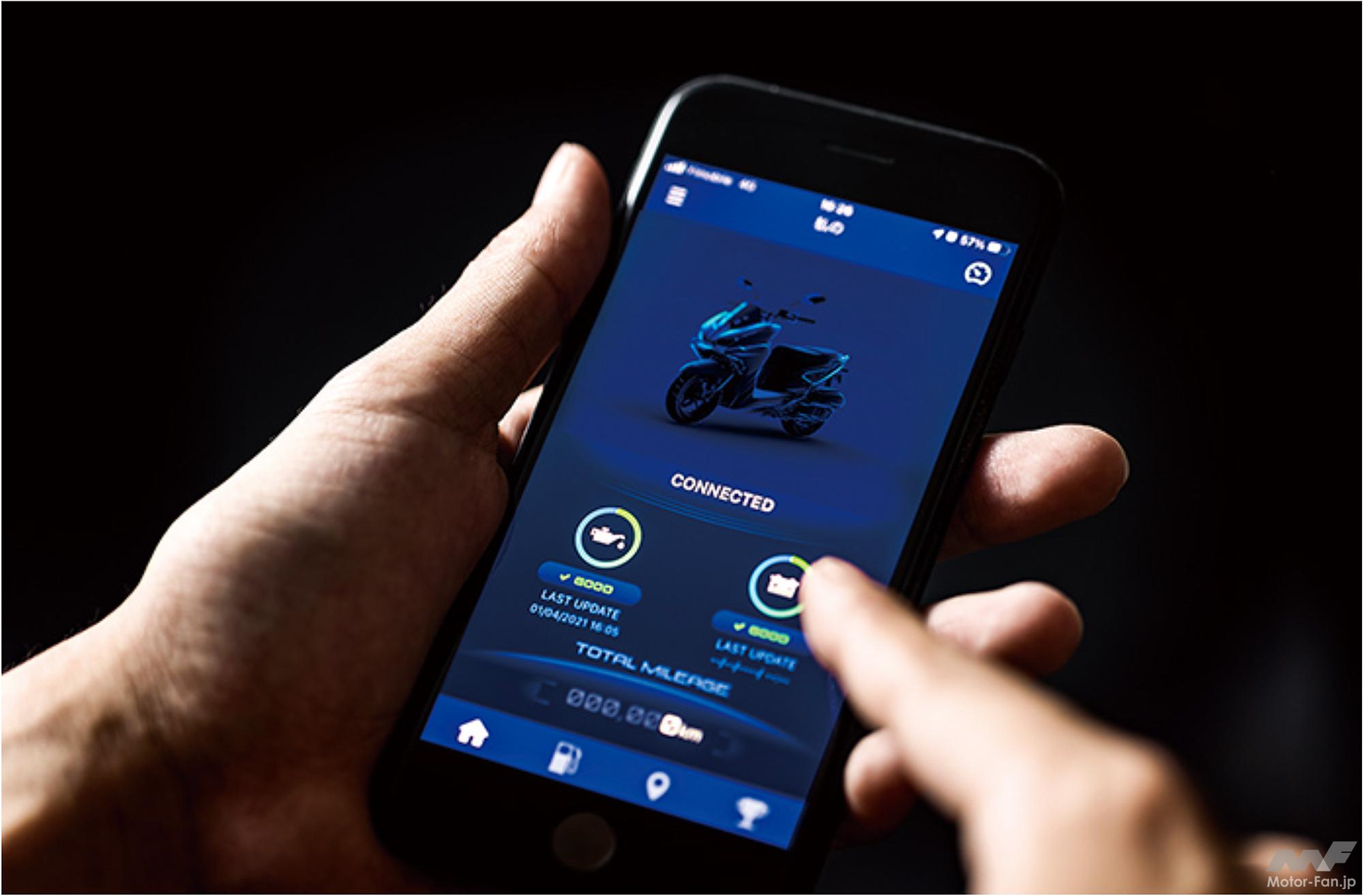 「Yamaha Motorcycle Connect」のアプリを利用するとスマートフォンで車両状況が確認できるようになる。